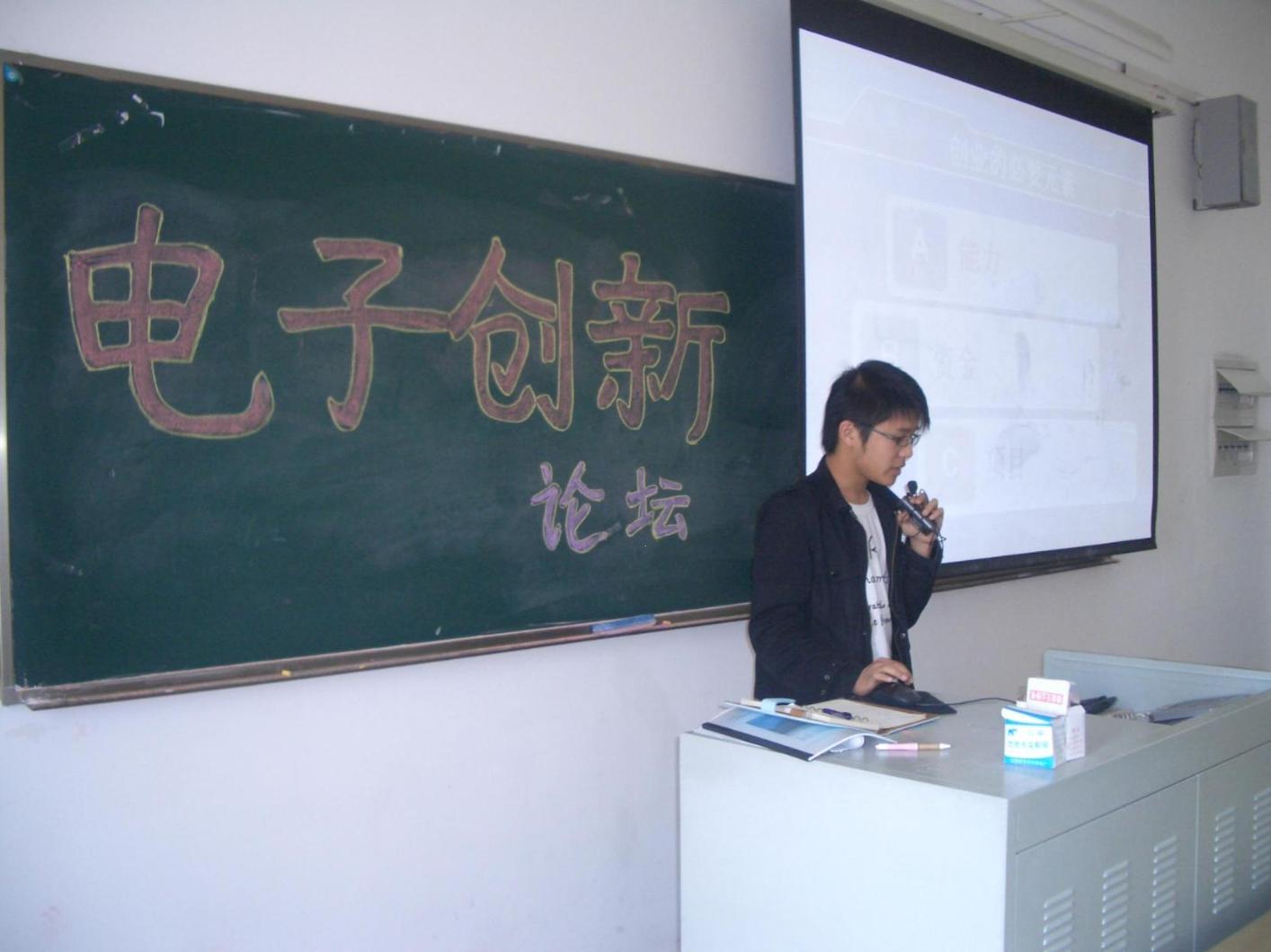 2009年4月29日中午12时,电子电气工程学院第四届科技节科技论坛活动之一,大学生电子创新讲座在教学楼E411举行。 创新是当代世界的主流,大学生作为国家建设的一名后备军,培养大学生的创新能力也变得格外重要。本次创新讲座,学院邀请了学校科创中心的骨干成员和学院电子设计协会会长向同学们讲解创新的意义和创新实践的过程。教室中座无虚席,同学们都全神贯注地听讲,做笔记。同学们也针对演讲者的问题进行讨论,并通过认真思考提出问题,比如“如何克服创新过程中的瓶颈”等,演讲者结合自身经历,回答了大家的问题。