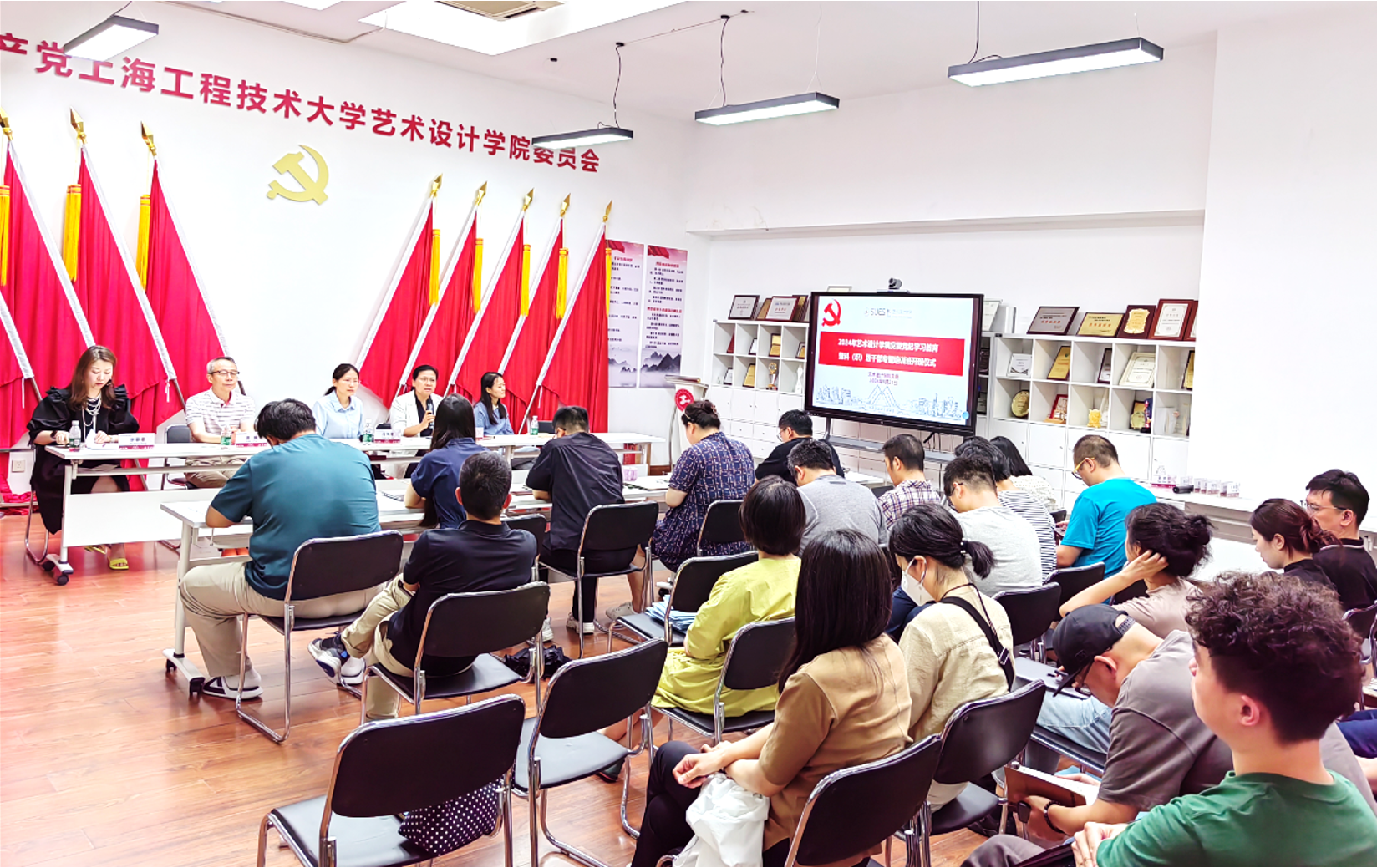 为持续深入推进党纪学习教育,进一步强化学院“三特”建设,加强学院党委科(职)级干部学习交流,切实提升干部政治能力和履职能力,6月21日下午,艺术设计学院党委在艺术楼A412召开党纪学习教育暨科(职)级干部专题培训班开班仪式。学校纪委副书记、巡察办主任段海霞,学校党委教师工作部副部长孙守印,艺术设计学院党委班子成员、学院党委全体科(职)级干部参加了开班仪式。本次开班仪式由艺术设计学院党委书记李云先主持。