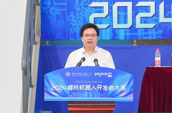 开幕式上,夏春明在致辞中指出,机器人技术作为当今科技发展的重要前沿,对推动社会经济繁荣、提升民众生活质量具有极其重要的意义。作为本次大赛的承办方,学校在工程教育方面始终坚持以学生为中心,以问题为驱动的教育改革,通过“项目案例+校企合作”的自主探索性教学方式,为学生营造既有理论深度又有实际应用的学习环境,让学生在解决实际问题中提升自己的创新创业能力。学校将全力完成大赛的举办,为参赛选手提供展示智慧与才华的绝佳平台,希望参赛选手通过比赛进一步挑战自我、探索创新、开阔视野、增长才干。