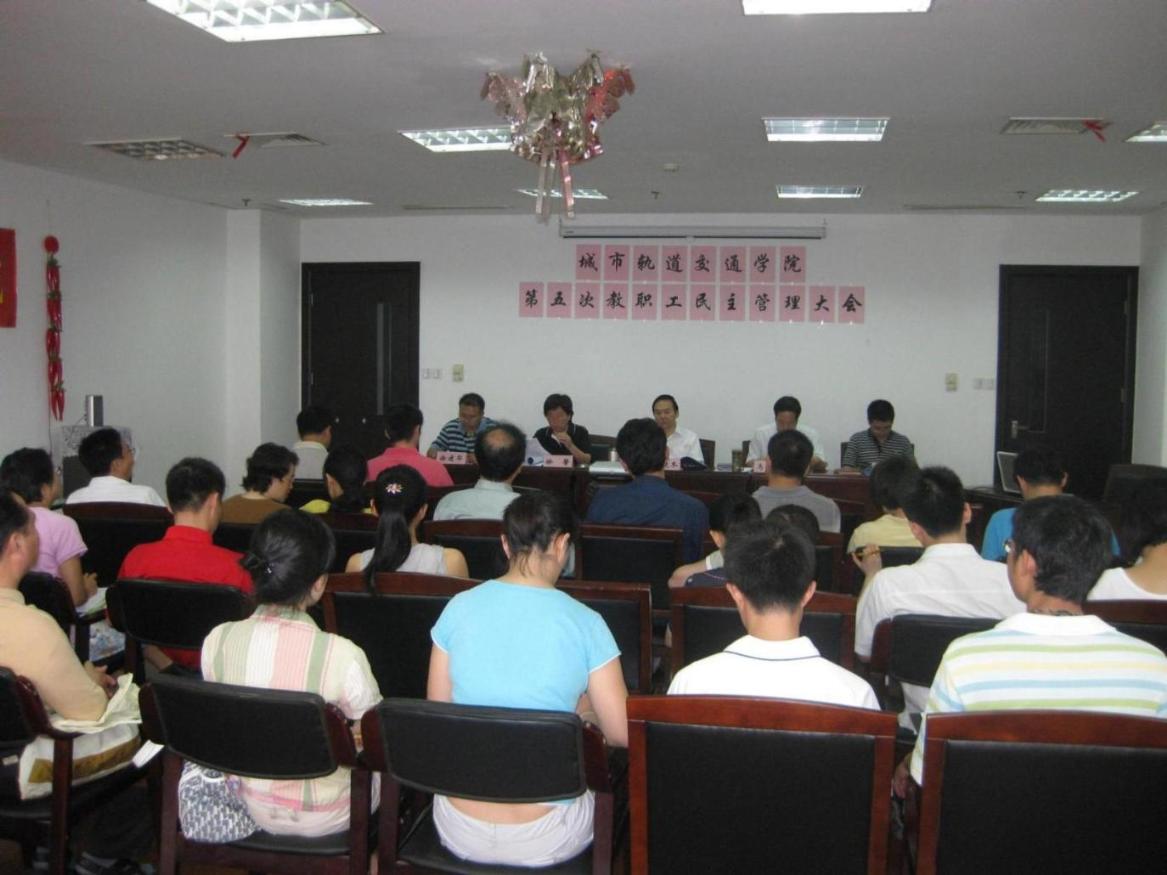 院长柴晓冬老师作了《城市轨道交通学院中长期发展规划》主题报告。他首先进行了一年来的工作回顾,总结了过去一年当中学院所完成的主要工作;肯定了学院教职工近一年来的工作。并且对学院发展定位于建设目标、重点研究方向、人才培养规划、本学科建设的瓶颈问题、学科发展的对策与措施以及希望学校解决的问题等作了一一阐述。 科研副院长马子彦老师作了《城市轨道交通学院2008~2009学年科研、实验室工作报告》,报告说明学院取得科研成果的突破,并且要求进行学科规划,推进科研发展,完成实验室二期项目建设,努力实现实验示范中心的申报。 教学副院长刘志钢作了《城市轨道交通学院2008~2009学年教学工作报告》,对过去一年的教学工作作了总结,要求加强精品课程和教材建设,保证教学质量,并且规范学院教学管理,最后提出了教学中存在的主要问题,希望学院教师积极改善。 学院党总支书记徐馨老师作《工会工作报告》,徐馨老师总结了2009学院工会在校工会、学院党政领导的关心支持下,紧紧围绕学院的中心工作,在加强内涵建设,提高教职工素质,服务教职工等各项工作中都取得了明显成绩,在推动学院和谐发展中发挥了积极作用。 最后,大会审议并全票通过了《院奖励津贴分配方案(修订)》、《学院2008年度经费使用审查报告》、《城市轨道交通学院帮困基金章程》。 第五次教职工民主管理大会在全体教师的充分肯定中圆满结束。此次大会是一个促进学院管理科学化、民主化的大会;广大教职工都表示,将继续发扬主人翁精神,进一步加强学院的民主管理,贯彻教育方针,实施素质教育,全面提高教育教学质量。 | |