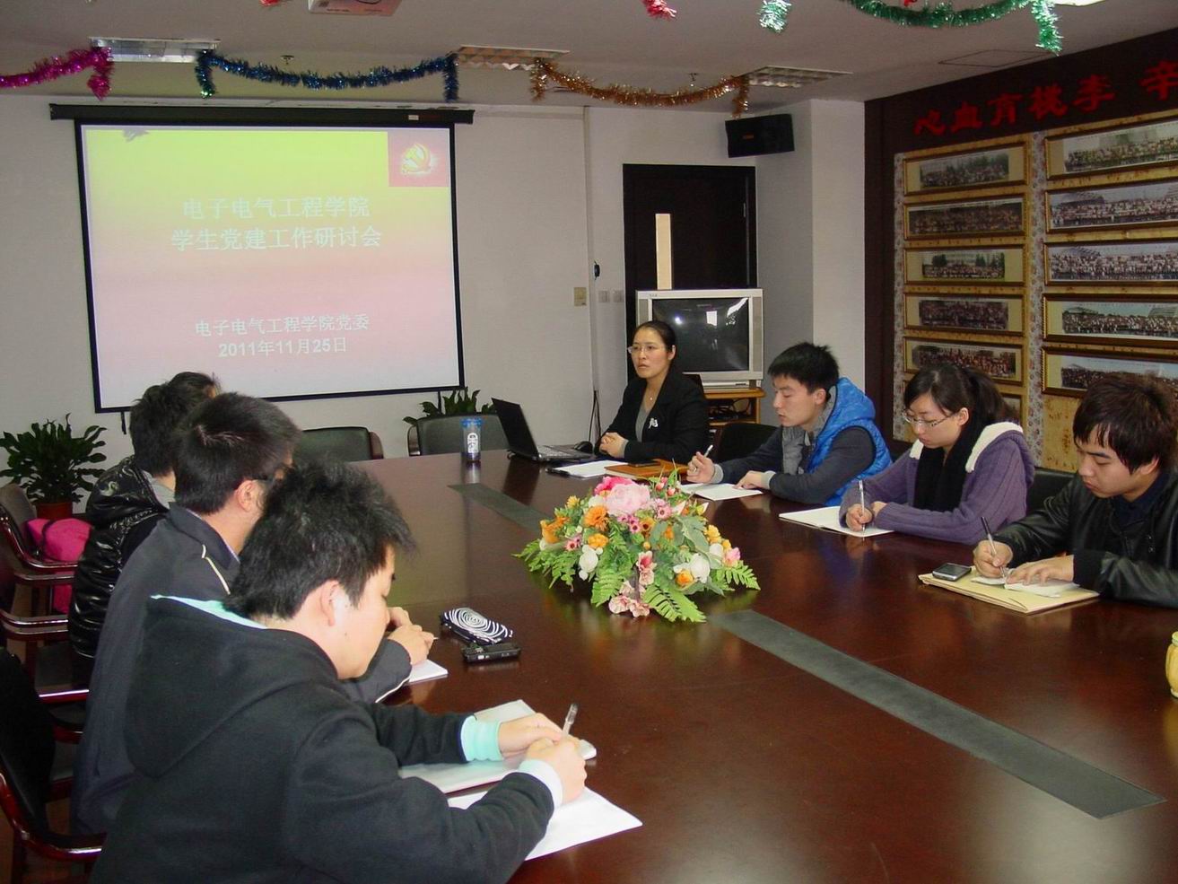 11月25日下午15:00,电子电气工程学院在行政楼912召开学生党建工作研讨会,会议由院党委书记茅蕾老师主持,辅导员梅元媛老师、刘铁英老师和新上任学生支部书记和支部委员参加会议。 研讨会上,学院党委书记茅蕾对学生党支部支部书记职责、组织委员职责、宣传委员职责进行详细讲述。她要求学生党员应当做好带头模仿作用,特别是学生党支部书记更要做到学业争先,行为争范。此外她还主要讲述发展党员的主要流程,以及学生党支部书记所扮演的重要角色,提出要定期、规范、公平的发展学院优秀分子为党员,为党组织培养后备军。 本次会议的学习全面提高了新上任支部书记、支部委员的理论素养和业务能力,相信这些同学一定能积极发挥作用,做好党建的各项工作。 |