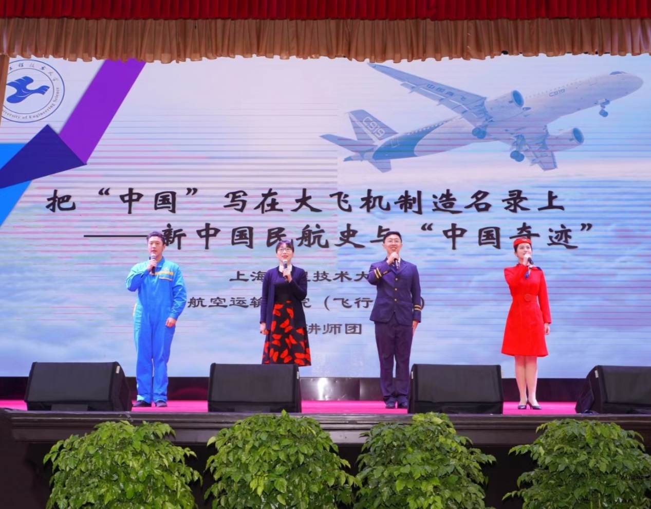 专业故事成为课堂“活教材”,航空运输学院(飞行学院)团队的主题演讲,立足专业背景,结合生动实践,以C919国产大飞机这个民航史上的“中国奇迹”为契机,为大家打开了一幅新中国民航史的历史长卷,展示了代代中国民航人艰辛的发展历程与不懈奋斗!呼吁新一代青年民航人要不忘初心,肩负航空强国、航空报国的历史使命,心怀祖国,用青春去书写中国民航史新篇章!