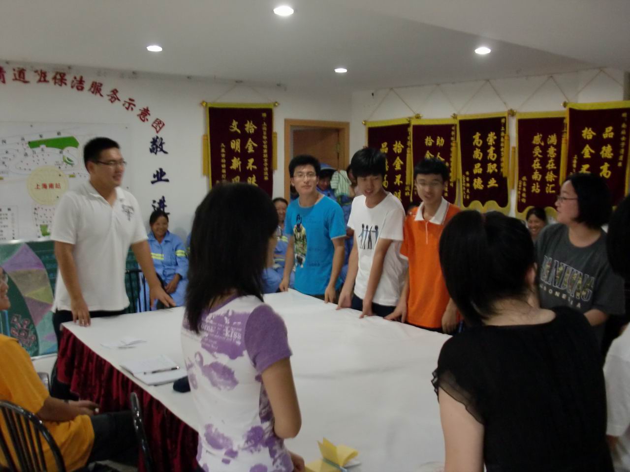 |  为进一步提高世博志愿者的服务质量,提高南站区域志愿者服务水平,8月4日下午,上海工程技术大学化学化工学院部分世博志愿者冒着39度高温,来到上海南站进行上岗前的踩点,并进行实地培训,培训由漕河泾街道负责人吴美华老师以及负责上海南站志愿者工作的吴芳老师主讲。 吴美华老师从历史、周边情况、上海南站志愿者站点分布情况等三个方面入手,详尽解读了上海南站的志愿者服务特点;接着吴芳老师进一步就志愿者工作情况与在座的世博志愿者进行了沟通,并希望志愿者能够遵守世博文明公约,讲究文明礼仪,爱护公共财物;之后,在吴美华老师的带领下大家来到广场公交站点,了解公交站点及轨道交通分布情况,并走到世博2路、世博外建站实地查看,接着她带领大家走进地下通道,参观其中的三个内设站。最后,世博志愿者与自己的站长进行了单独的培训。 通过本次培训,化工学院的志愿者们达成共识,表示将克服困难,不断学习世博知识,积极投入志愿者服务行列,为世博会贡献一份力量。 |