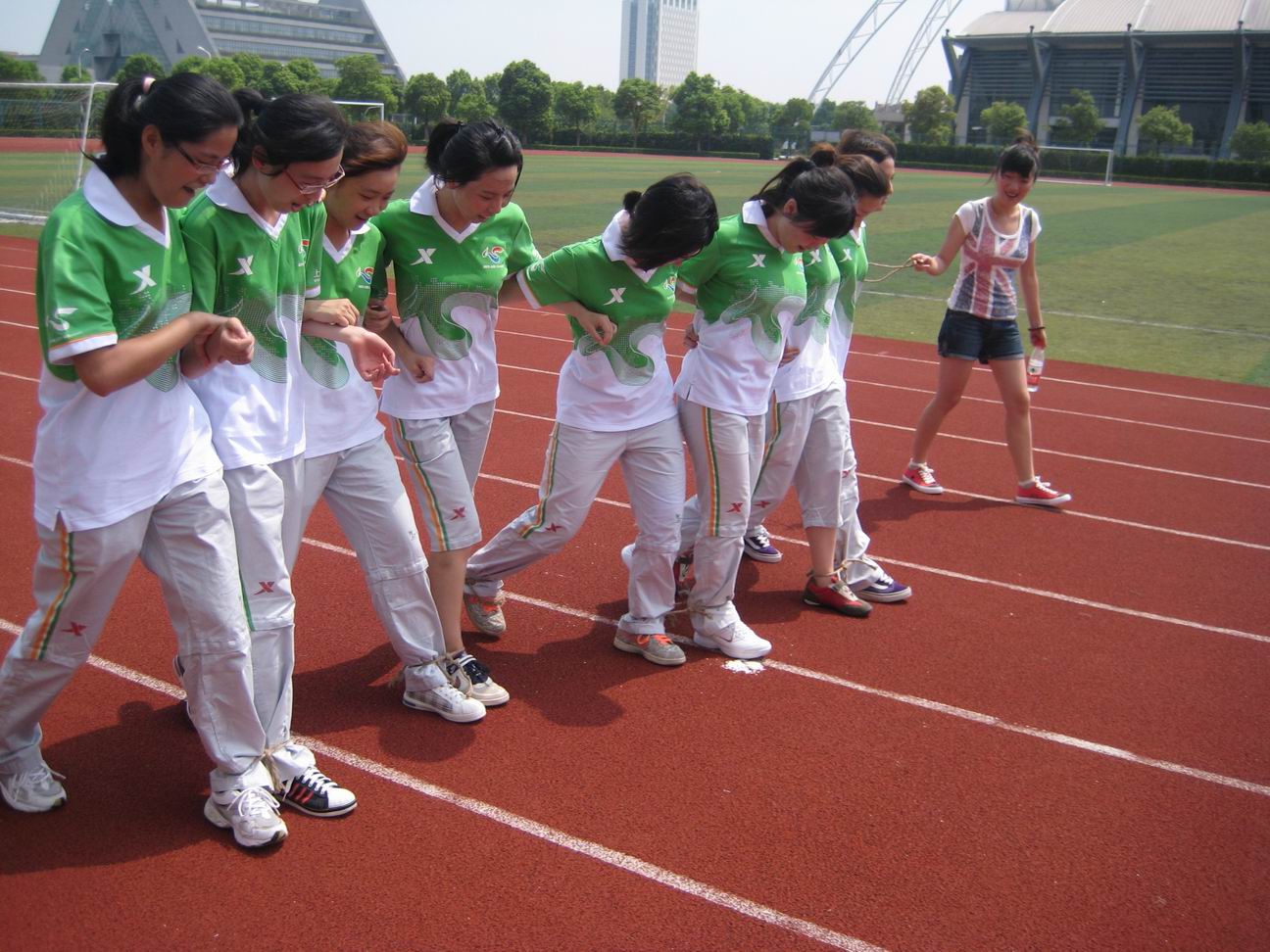 |  8月5日上午9:00,服装学院园区志愿者们在大操场参与了我校世博V计划的素质拓展活动。“世博V计划”是为了让即将入园区工作的所有“小白菜”提高身体素质,预防中暑等情况,更好地为各位游客提供服务而特地推出的。该计划不仅指导他们有规划地锻炼身体,同时还加强“小白菜”之间的凝聚力。 我院的各小组志愿者们积极参与了,8人9足、接递乒乓球、创意拍照、信任后摔等游戏,游戏活动增强了各组员之间的默契,使同学们加深彼此之间的信任,也锻炼了大家的团队合作精神。  虽然烈日炎炎,但是无法与大家的热情比拟。志愿者们在愉快的氛围中加深了彼此的了解,为2天后的园区志愿者工作做出充分的准备。 |