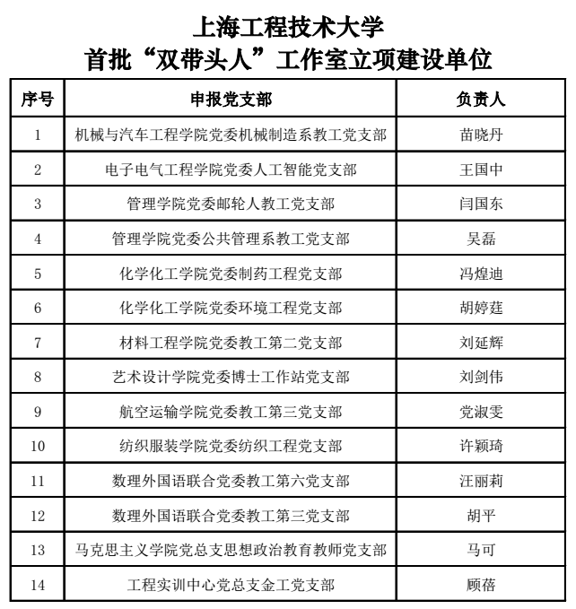 在学校各基层党组织积极配合下,经过严格评选,共有机械与汽车工程学院党委机械制造系教工党支部等14个党支部获上海工程技术大学“双带头人”党支部书记工作室建设立项。朱晓青副书记与王敏副教授共同为获得立项的党支部书记颁发立项证书。通过强化“双带头人”教师党支部建设,着力发挥教职工党支部的主体作用,把思想政治工作、把从严教育管理监督党员、把群众工作有效落到支部,努力把教职工党支部建设成为宣传党的主张、贯彻党的决定、领导基层治理、团结动员师生、推动改革发展的坚强战斗堡垒,为坚持立德树人根本任务,加快学校转型发展和国内一流的高水平现代化工程应用型特色大学建设提供坚强保证。