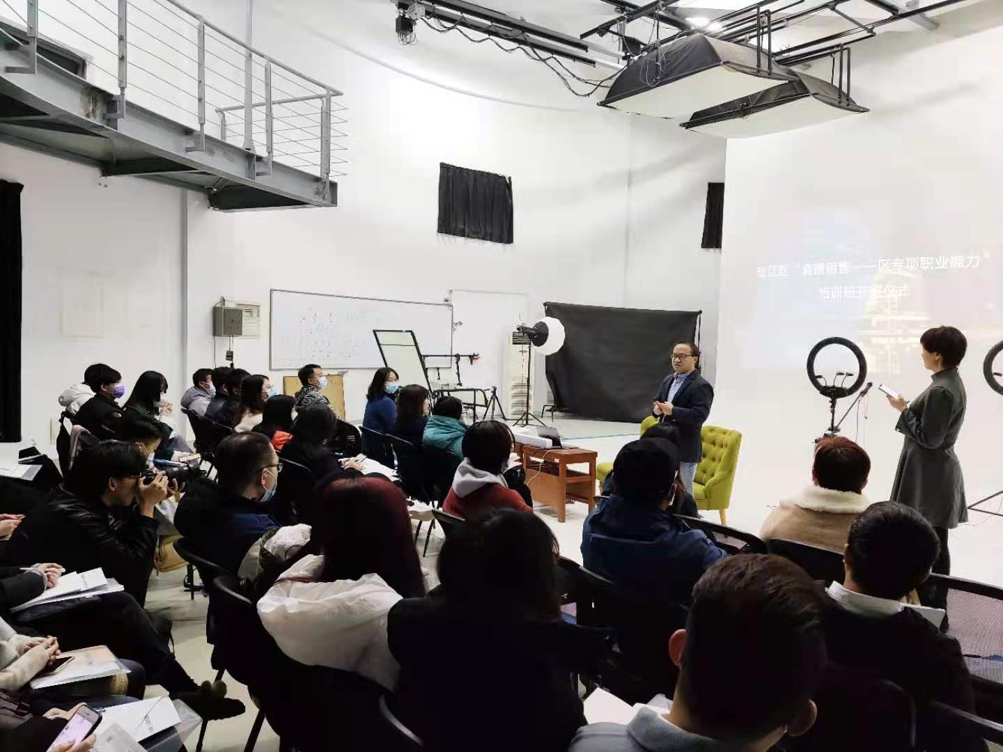 12月13日上午,松江区“直播销售——区专项职业能力”培训项目在我校松江校区艺术楼D楼举行了开班仪式。今年,人力资源社会保障部、市场监管总局等多部门联合发布一批新职业,其中在“互联网营销师”职业下增设了“直播销售员”新职业信息。面对新职业的形成,为提高松江区新职业从业人员职业技能素质,加快形成新职业的人才培养体系,区人力资源社会保障局联合我校继续教育学院开设“直播销售(区专项职业能力)”培训项目。该直播销售培训班首次尝试由大学承担政府的社会化培训项目,希望通过本期培训班进一步深化区校合作共育技能人才。