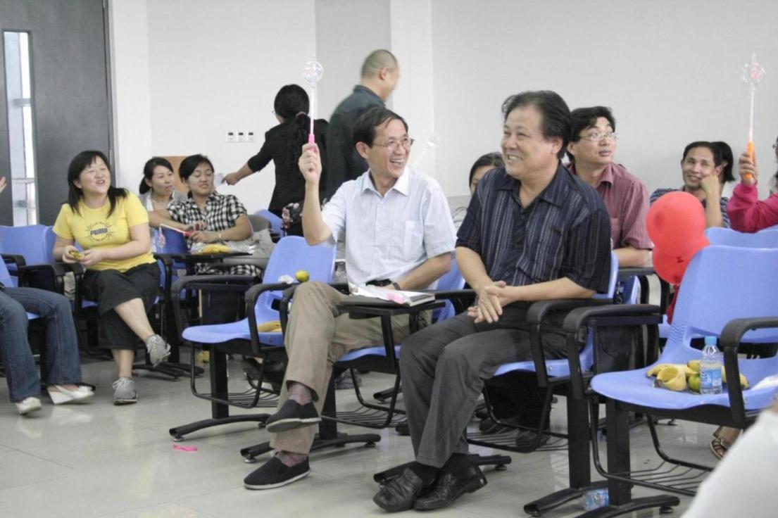 联欢会上,院党总支书记潘惠德、院长马新宇老师首先向全体教职工致以节日的问候,紧接着潘惠德书记以“颂国庆 迎世博 赞师德”的主题诗歌朗诵,马新宇院长用教职工的名字为谜底的谜语拉开了联欢会的序幕。学院各科室、各系办的教职工纷纷走上台,尽情参与游戏节目“抢板凳”、“折报纸”、“踩气球”,不时引得哄堂大笑;节目中,还不时穿插节目颁奖和联欢会抽奖,扣人心弦;国粹表演《昆曲》、滑稽表演《陕北民歌》把联欢会的气氛推向高潮。
