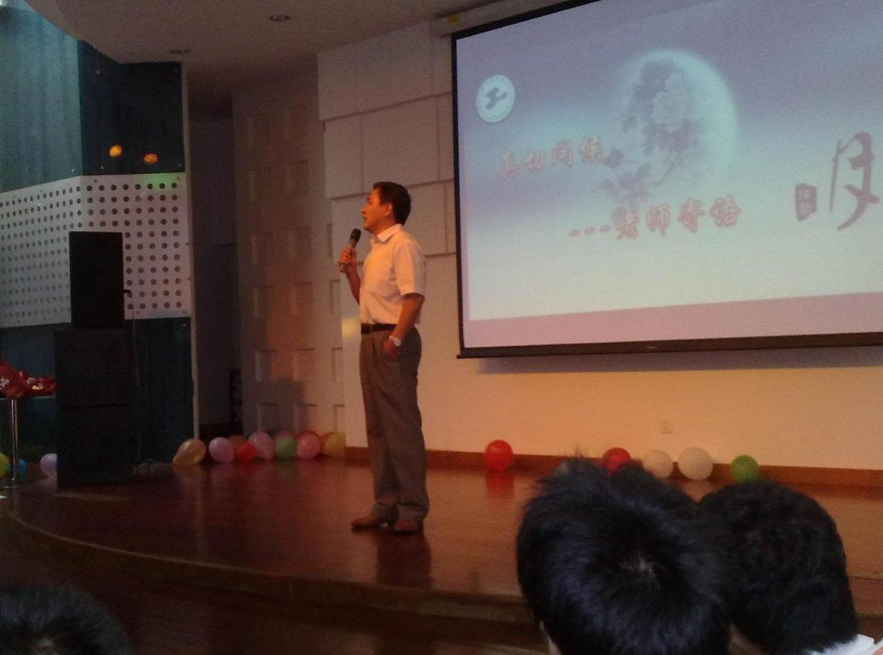 程院长致词后,学院党总支书记姚黎明教授也即兴为大家献歌一首。《真心英雄》的优美歌声获得了同学们的阵阵掌声。 随后,现场展开了感人至深的“电话送亲情”活动,让那些远在异乡但无法回家的同学通过电话给远在异地的父母送去问候,这一场面也将整个联欢会的气氛推向了高潮。 在抽奖活动的热烈气氛中,联欢会达到了尾声。整个联欢会取得了圆满成功。 | |
