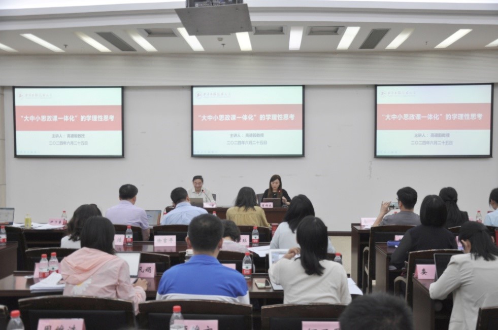 6月25日,马克思主义学院在图文信息中心第三报告厅举行学术讲座,上海市政府重大行政决策咨询专家、原上海市教育委员会副主任高德毅教授应邀作了“新时代熔炉育人理念创新与探索——大思政体系建设与教师责任”专题报告。学院党政班子成员及全体教师参加了学习,讲座由学院党委书记董旖旎主持。