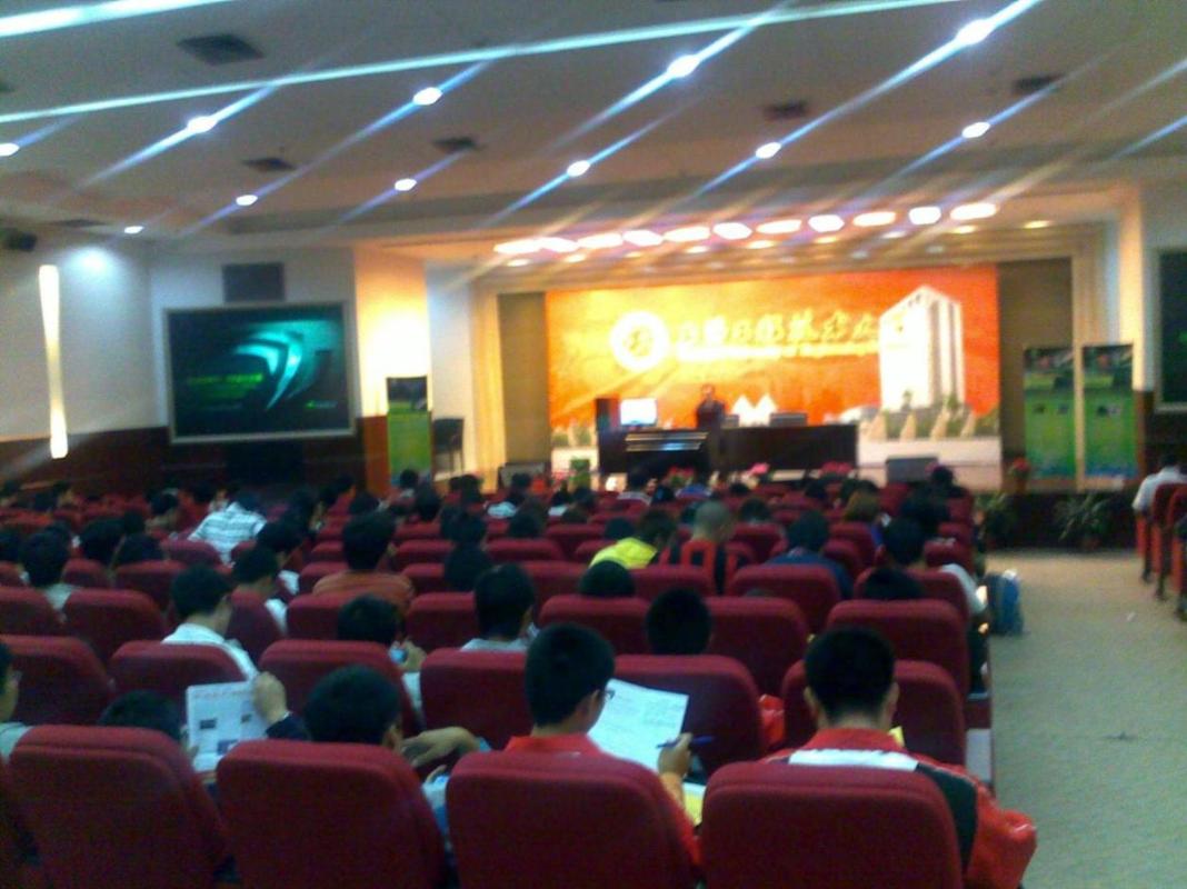 首先,白银女士向在座的学生们介绍了09年3D大赛的简要情况,并向学生们展示了以山东济南大学的“毛泽东号”航母为代表优秀入围作品,这次3D大赛也引起了社会各方面的热切关注,3D大赛同时为大学生就业开启了“双选”直通车。 随后,傅伟先生向 同学们介绍了最新的3D硬件显卡,他向同学们具体讲述了3D技术在游戏、电影、汽车及其零件模型制作的应用。并介绍了3D最先进的硬件设备及软件编程。讲座最后,傅伟先生与同学们进行了一场问答互动,并向答对问题的同学赠送了礼品。就像白银女士开场所讲的,“我行我秀—我的青春我做主,我的设计我来秀”。3D大赛提高了大学生创新实践的能力,塑造了他们的个性。 | |