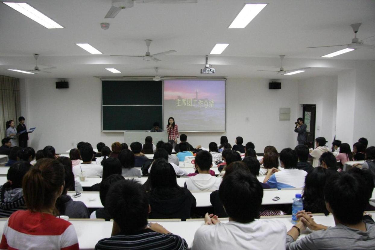 总结会现场人头颤动,新老成员汇聚一堂,其乐融融。首先,新老主席团进行了交接仪式,总结了去年团学联工作,并对今后工作提出了新的要求。随后,院志愿者部的新老部长上台,进行了志愿者基金的交接仪式,让爱心代代相传。紧接着,院团学联组织部、秘书部和志愿者部等11个部门的部长及副部长们上台在大会总结了上一年的主要工作内容、取得的成绩和不足之处,并且提出了下一年的工作计划。各部门不仅以PPT配上背景音乐的形式,更采用了视频的方式,其内容丰富多彩,形式多样活泼。