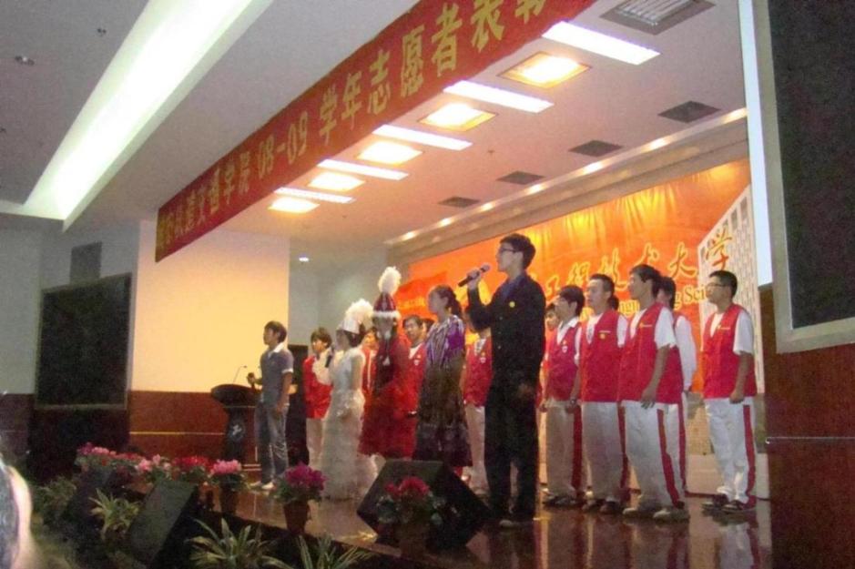 大会伊始,通过一段视频带领大家一齐回顾了学院四年的志愿活动。接着,徐建华老师对学院志愿者活动作了总结发言,他肯定了这一年来志愿者部所取得的丰硕成果,并感谢大家的努力和付出,也希望09级的新一代志愿者可以传承这种无私奉献的精神并将其发扬光大。随后由各位老师为优秀志愿者颁奖,这不仅仅是一种嘉奖,对于09级的志愿者们而言,这更是一种激励与鞭策。 各奖项颁发完毕后,08级优秀志愿者组长潘雯婷代表发言,发言中她回顾了自己作为一名志愿者的成长历程,也谈到了自己在活动中的所得和感悟,同时呼吁更多的人能够加入到志愿者活动中,为完善地铁服务事业而努力。随后,09级志愿者代表田懋同学宣读了志愿者的有关规定,并带领全体09级志愿者宣誓。他们字字铿锵有力,饱含着他们乐于服务社会,饯行志愿精神的决心,会场内的庄严气氛感染了每一个人。最后全体志愿者合唱了《在你身边》,大会也在美妙的歌声中缓缓落下了帷幕。