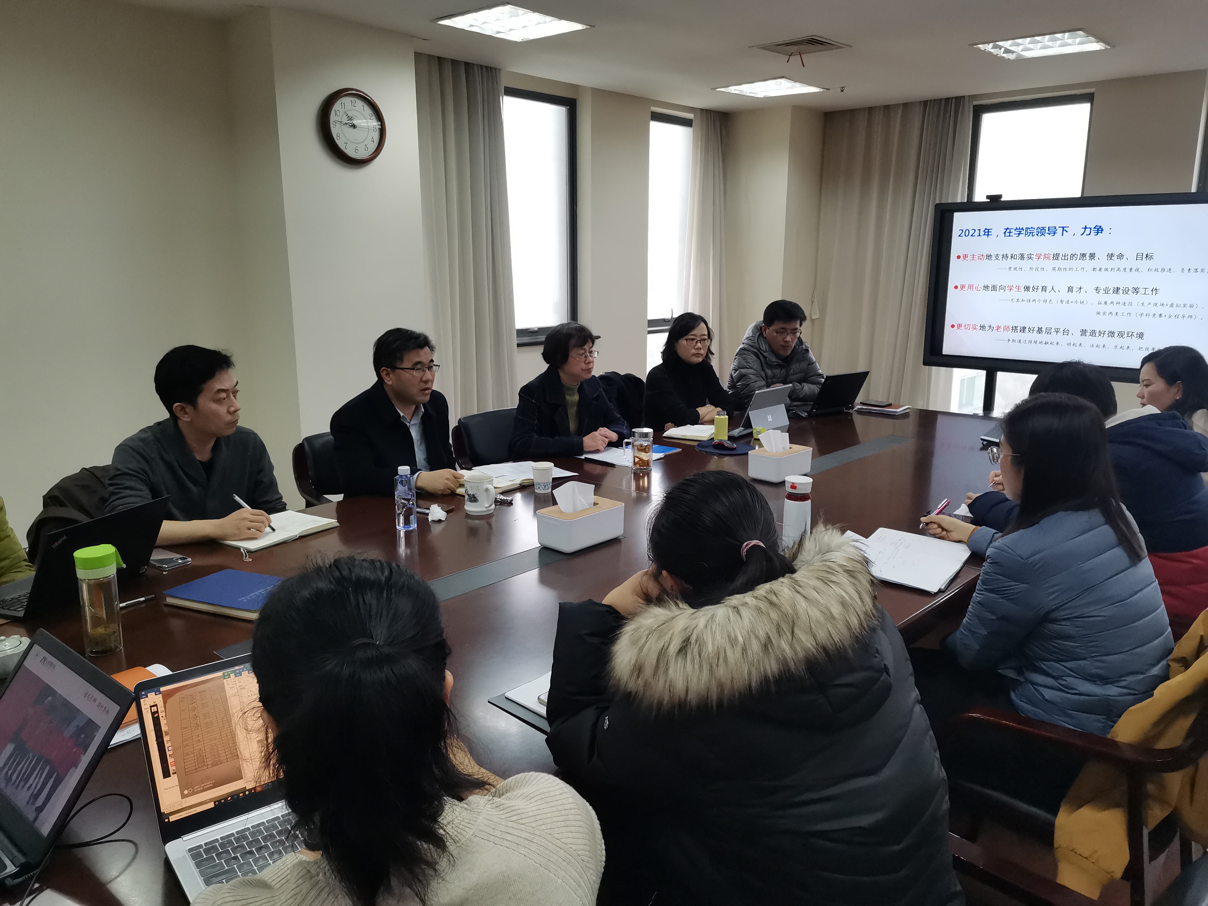 为深入了解学院各项工作的实际推进情况,进一步了解教师对学院各项工作的意见和建议,听取教师对学院发展的思考,促进2021年学院科学发展,推动学院更好地服务地方经济社会发展,12月8日至11日,管理学院党委书记周洁,院长胡斌等领导班子成员深入学院各系室开展调研工作。各系室全体教师参加了此次调研活动。