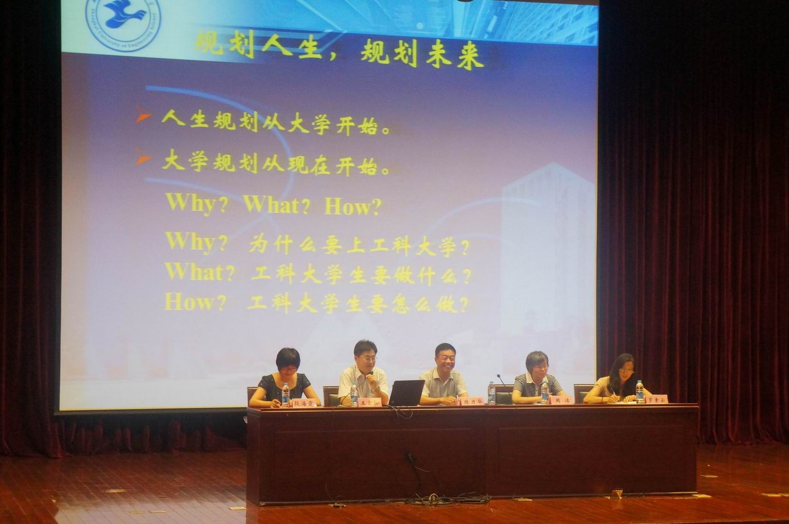 |  8月28日下午,汽车工程学院2013级新生开学典礼暨军训动员大会在图文信息中心志宏堂举行。原副校长、原汽车工程学院院长陈力华,院党委书记周洁、院长王岩松、副院长罗素云出席了本次开学典礼。开学典礼由院党委副书记段海霞主持,全体新生班导师、辅导员、2013级新生参加了开学典礼。  会议开始,首先由新生代表冯雷阳党员同学做了题为“青春,无所不能”的主题发言,代表党员,他作出了郑重承诺:对党忠诚、积极工作,为共产主义奋斗终身!代表新生,他发出了最嘹亮的声音:将刻苦努力,勤于钻研、尊敬师长,团结同学、不畏困难,积极上进,在上海工程技术大学谱写新的篇章! 原副校长、原汽车工程学院院长陈力华教授以《争做合格大学生》为题,为同学们上了精彩而生动的一课。他对上海工程技术的历史如数家珍,对汽车工业的介绍全面,他激励每一位大一新生“自我加压、自我设计、自我参与、自我管理”,在学习上努力进取,生活上严于律己,努力成为有责任感、有事业心的时代青年。 院长王岩松教授详细介绍了学院的总体情况和学院特色,介绍了学院的专业设置、培养目标、课程体系、就业方向,以及“卓越工程师”培养计划,并分享了如何进行人生规划的心得体会。院党委书记周洁老师介绍了大学学习生活的特点,鼓励大家尽快实现角色转变,合理利用时间,利用资源,积极参加党团组织的各项社会实践活动,发挥先锋模范作用,锻炼自己、充实自己。 最后,学院党委副书记段海霞老师进行了军训动员,介绍了军训主要内容,强调了军训的纪律要求,安全规定,请假规定,注意事项等,希望大家通过军训实现“三增”的目标,即增强身体素质,增强国防意识,增强团队精神。 |