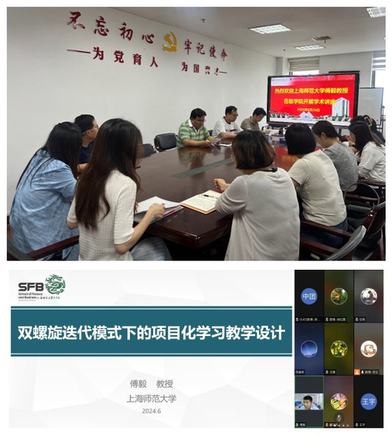 6月26日下午,数理与统计学院邀请上海师范大学商学院副书记傅毅教授开展“双螺旋迭代模式下的项目化学习教学设计”培训。本次活动由学校教师教学发展中心主办,数理教发分中心承办。讲座通过腾讯会议面向全校教师直播,数理与统计学院40余名教师参加培训。讲座活动由王国强院长主持。