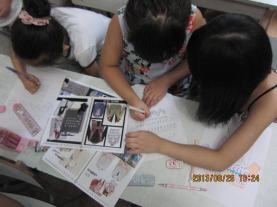 |  “洋文化”冲击,“民族文化”失色了吗?今年暑假, 服装学院暑期社会实践团队,深入云南开展以“印象云南---领略民族服饰,重拾民族色彩”为主题暑期社会实践活动,旨在通过我们的力量,去学习和弘扬民族文化,了解和传播的民族服饰。学生走访了傣族、白族、纳西族等当地少数民族,细致了解少数民族文化和民族服饰精髓。回沪后,他们带着自编自制的走访成果——《“印象云南”民族服饰搭配手册》走入学校、进入社区,进行一系列的知识文化推广活动,从而使学生们和社区居民们,更多地了解少数民族,更多地去接受和喜爱民族服饰,也可以更多地在日常生活中运用民族服饰元素。   印象云南校园行——民族就在你我笔下 8月26日上午,服装学院“印象云南”实践团队来到普陀区心灵暑托班,为学生们上了一节生动的“民族文化”课。团队成员们向同学们介绍了少数民族文化,展示了民族元素服饰,并让学生发挥想象,在感受和领略了特有的色彩搭配和服装服饰后,自己动手创作民族文化T恤样稿。 起初,小朋友们对于少数民族以及民族文化了解甚少,在第一环节的知识问答中,只有少数学生对我们的提问有所应答,团队成员们甚至还担心接下去的活动难以进行,但小朋友们对于民族文化的好奇和对民族色彩的浓烈兴趣让团队队员们大为欣喜,他们认真地听着各个少数民族的介绍、对于民族服饰的解读、以及民族色彩的搭配演示。凑巧的是,活动当天班中正好有一名女生穿着具有民族元素服饰,于是团队成员们活教活用,现场对同学的服装进行演示讲解,让学生们有了直观的感受。之后,在“老师们“现场教授演示民族服饰色彩和图案之后,学生们开始创作自己个性化的民族元素文化T恤样稿。短短半个多小时,孩子们画出了简单的花纹图案,配上鲜艳的民族风对比色彩,俨然成了一位位民族服饰小设计师了。 本次活动,加大了民族文化在学龄儿童的影响力,从而加深了学生们对中国少数民族的认识,也加深了他们对民族服饰文化的认识,这一课,让同学们获益匪浅! 印象云南社区行 感受民族服饰风采 8月27日,“云南印象”实践团队来到松江民乐小区,为社区居民朋友们奉上精彩的“印象云南—民族服饰搭配” 讲座。同学们与居民们分享了云南实地走访照片,讲解了少数民族服饰文化,同时,也为居民们进行民族元素服饰搭配指导,让居民们足不出户就能感受民族服饰风采。 相比于学龄儿童,社区居民们对于少数民族了解颇多,在民族服饰展示以及问答中,现场进行了热烈的互动,有一位去过云南做知青的阿姨还为我们现场讲解起她当时作为知青时,所体会和学习到的少数民族风俗习惯以及穿着打扮原则,她的现身说法,为我们这堂讲座描绘了生动的一笔。活动的高潮在于进行民族服饰搭配指导环节,日常生活中,我们往往不知道如何讨巧地将现代服饰与民族服饰完美地运用,通过同学们现场的知识理论讲解以及实际操作演示,居民们学到了民族服饰搭配法则,在接受现场指导后,居民们纷纷表示,学会时尚、学会“中国风”了,恍然大悟原来民族元素服饰经过不同的配搭还能在不同场合穿出不同风格呢! 活动在欢快的气氛中结束,居民们连连表示对此次活动的赞赏,同学们的讲解和演示,让他们足不出户就能领略民族色彩,让他们在墨守成规的穿衣法则中,学到了新颖时尚的穿着搭配方法,居民们还表示很高兴能参加此次活动, 十分感谢团队的来访,期待着类似的活动能够延续。 本次社会实践,成员们走进校园、社区,向学生、居民介绍民族服饰,将民族元素融入现代生活,融入现代服饰,从而使少数民族服饰在日常生活中得到推广,使民族文化在大众心目中得到推广。本次活动让团队成员在走访和实践中收获课外的知识,在传播和推广活动中收获成就的喜悦。后期,我们还将带着搭配手册进入服饰商店,向销售民族服饰的店家探讨和学习有关于民族文化和民族服饰的相关知识。青春,代表着热情、进取和正能量! |