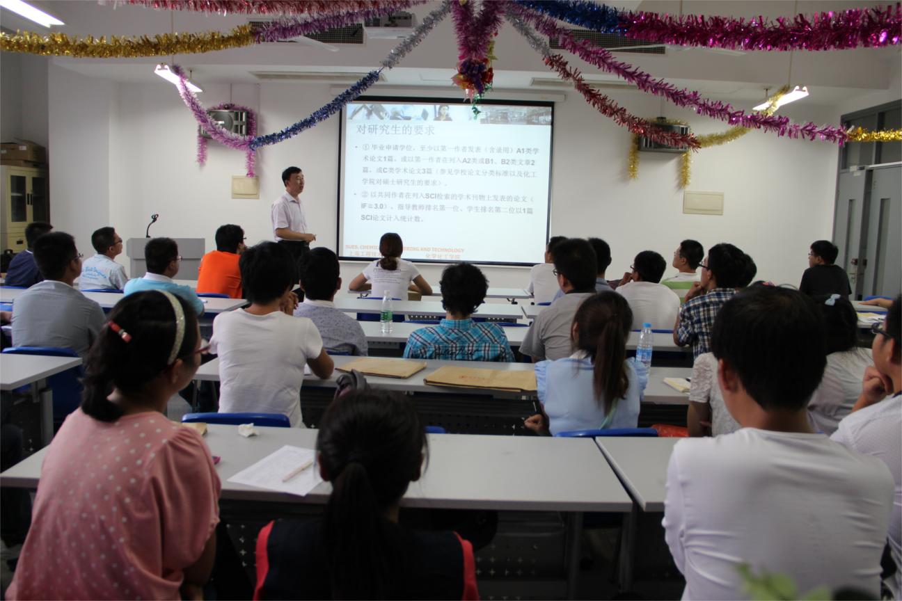 |  9月9日下午,化学化工学院迎来了40名2013级研究生新生,在实训楼4405会议室召开新生入学教育会。学院党总支书记刘宇虹、院长徐菁利、分管研究生工作的副院长郑文锐出席本次会议,会议由学院研究生秘书郑晓昱主持。 首先,刘宇虹书记代表全院教师向2013级材料物理与化学研究生新生致欢迎辞,她对大家的到来表示最热烈和最真挚的欢迎!同时,她也向全体新生提出了五点要求与希望:一是树立远大的理想,并为之努力奋斗,矢志不渝;二是坚持勤奋学习,学以致用,从实际出发;三是养成优良的品德,树立正确的世界观人生观价值观,培养品德,提高素质;四是勇于实践创新,以此来推动先进生产力;五是养成艰苦奋斗的作风,切勿贪图享受,为自身发展打好基础。刘书记的讲话为同学们进入化工学院上了十分深刻的第一堂课。随后,郑文锐副院长和新生们就日常学习和生活做了简短的交流,并就学生生活、实验、安全以及过渡期的心态调整提出了一些建议,希望同学们珍惜时光,努力学习,在面对假期的时候做出正确的选择,为两年半后的就业、考博和留学做好规划,高效提升自我。 徐菁利院长从学院的发展历程、极具特色的办学理念、丰富先进的教学设施以及研究生培养工作等几大方面为新生们上了详细而又生动的一堂课。他对全体研究生新生提出了高标准和严要求,希望在未来两年半的日子里,同学们能在收获母校文凭和实用技能的同时,还能完善独立的人格、建立深厚的师生情,度过一个值得骄傲的研究生生活。院长激情高昂的讲话和殷切的祝福深深感染了新同学们!在仔细阅读了《化学化工学院研究生学风自律承诺书》后,研究生们坚定地表示在今后的学习生活中,他们会不断督促和鞭策自己履行这项重要的诺言! 最后,研究生秘书郑晓昱老师为同学们解读了部分《研究生新生手册》,以便同学们规范研究生的学习生活,更快更好地适应新环境。经过此次学院的新生教育会,研究生们都为老师的亲切话语感动,纷纷表示受益匪浅,一定会树立正确的目标并为此努力奋斗! |