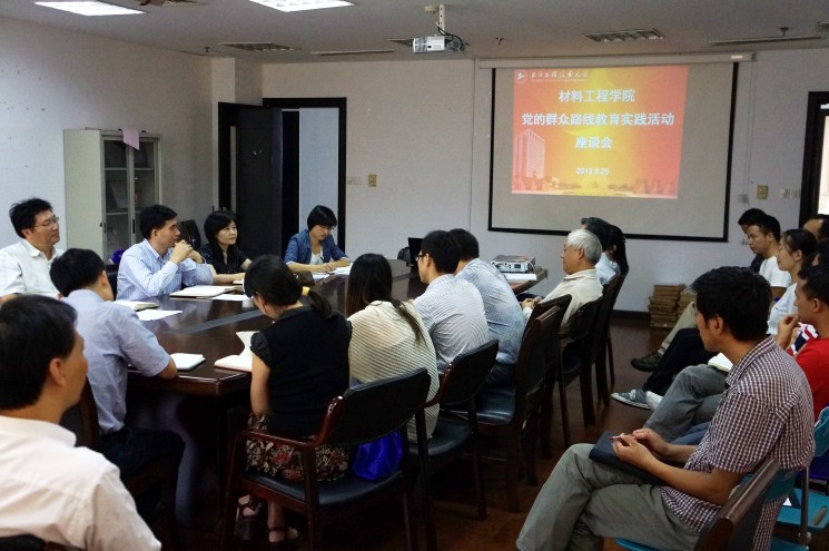 |  9月25日下午,在行政楼1612室,学校党委书记滕建勇到材料工程学院参加党的群众路线教育实践活动座谈会。滕书记代表学校领导班子深入基层了解学院对各级领导班子、机关部处及党员干部在“四风”方面的情况,了解作风中存在的突出问题,找准问题,加以解决。参加会议的有学院党委书记陆展华、院长于治水,各系主任、实验室负责人、各党支部书记、民主党派、一线教师、教授代表,以及学生、研究生代表等。 座谈会首先由陆展华书记介绍学院开展党的群众路线教育实践活动的情况,学院正在按照学校党委的部署积极有序地开展各项工作,学习教育、征询意见。接着,与会教职工与学生代表先后发言,从各自的角度对学校机关、处室等职能部门,提出了一些意见,包括教学管理、研究生培养、青年教师政策扶持、学生排课、学校教学资源合理安排、实验室教师与辅导员编制等。 滕书记边记录,边说明。最后,他指出,材料工程学院内涵发展一直走在学校前列,但是发展越是快,越会遇到各种新的问题,通过这次群众路线教育实践活动提出来,将征集到的意见建议进行认真梳理,对于推动学院与学校发展很有帮助,可以起到引领作用。对于意见,有些可以马上解决,有些现在条件还不具备,但也应有所考虑,还有一类应该依靠制度完善加以解决,学校会及时通报问题解决情况。 |