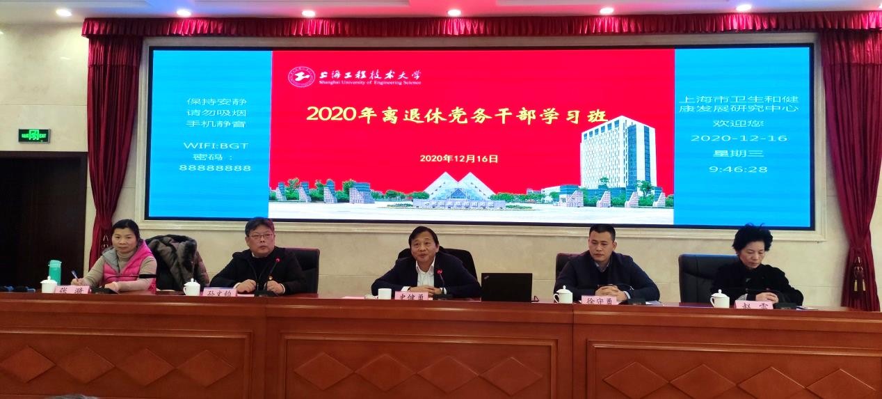 校党委副书记史健勇、上海市委老干部局政治待遇处副处长徐守勇出席了开班仪式,开班式由离退休党工委书记、退休工作处处长孙文钧主持。离休干部代表、退休局级干部直属党支部老领导、关工委特邀党建组织员、离退休党务工作者近70人参加了学习班。