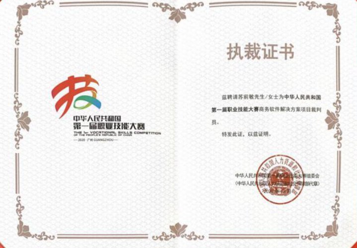 苏前敏副教授受邀为中华人民共和国第一届职业技能大赛执裁