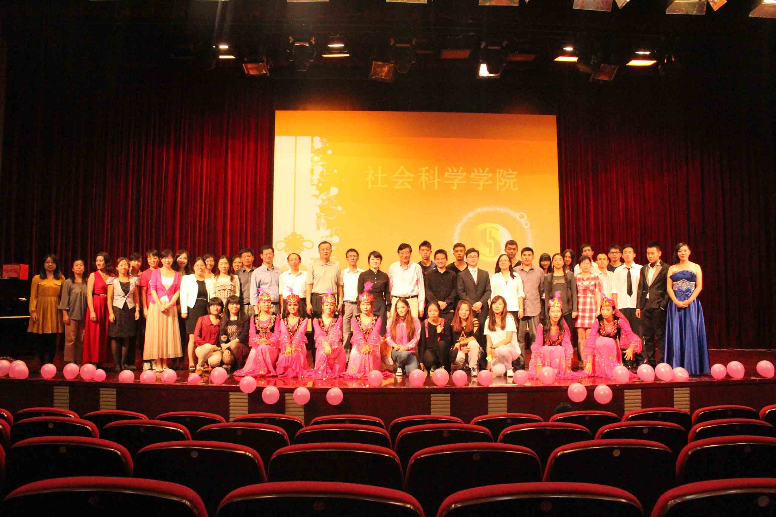 |  9月27日下午,社会科学学院迎国庆•庆校庆师生联欢会在校图文信息中心志宏堂拉开了帷幕。松江区交通执法大队政委骆津、学院党总支书记曹开云,院长张健明,党总支副书记程玉莲,副院长刘志欣出席了晚会,全体教职工和学生参加了联欢会。  本次晚会主要以“我和大学恋爱了”为主题,以相恋、热恋、倦恋、留恋等四个篇章展开,与每位同学在大学期间的生活状态为之呼应。随着屏幕上的倒计时指针指向0,联欢会正式拉开帷幕。来自校舞蹈团的一支扇子舞《悸动》即刻引爆全场,一段回忆新生军训生活以及老师、学长学姐送寄语的视频让新生们感触颇深。联欢会上,根据“恋爱”的不同时期,同学们在台上用热情洋溢、激情四射的表演诠释与大学恋爱的美妙。徐吉平老师和学生幽默风趣地合唱一曲《存在》,让整场晚会达到高潮。大一新生们表演的街舞、日舞、民族舞都舞出了当代大学生个性绽放的青春风貌。13级学生的小班们也为同学们演唱了充满活力的《第一天》。晚会上,老师们忘情的表演,张院长声情并茂地朗诵了《孤独的价值》,曹书记在学生们的现场伴奏中深情演唱《十五的月亮》,引得场上阵阵喝彩。第四章节,毕业生通过视频说出了大学四年最开心的事和最遗憾的事,在场观众安静聆听,仿佛陷入了自己的深思。本次晚会在每段“恋爱”阶段还设置了抽奖环节,丰厚的奖品使得观众激动不已,现场欢呼声此起彼伏,气氛十分热烈。  联欢会接近尾声时,大屏幕中的张院长与曹书记对同学们的寄予深切问候与厚望,希望同学们在大学生活里能够学有所成,健康成长,实现自己的人生价值。 最后,晚会在一支美丽欢乐的新疆舞中圆满落幕,欢呼声在礼堂中久不散去! 一场欢庆,一种心情,一个梦想,一次回忆,这都是每位同学需要经历的,这也是大学里的一种生活,同学们都应在大学里放飞自己的梦想,和大学好好的恋爱一场! |