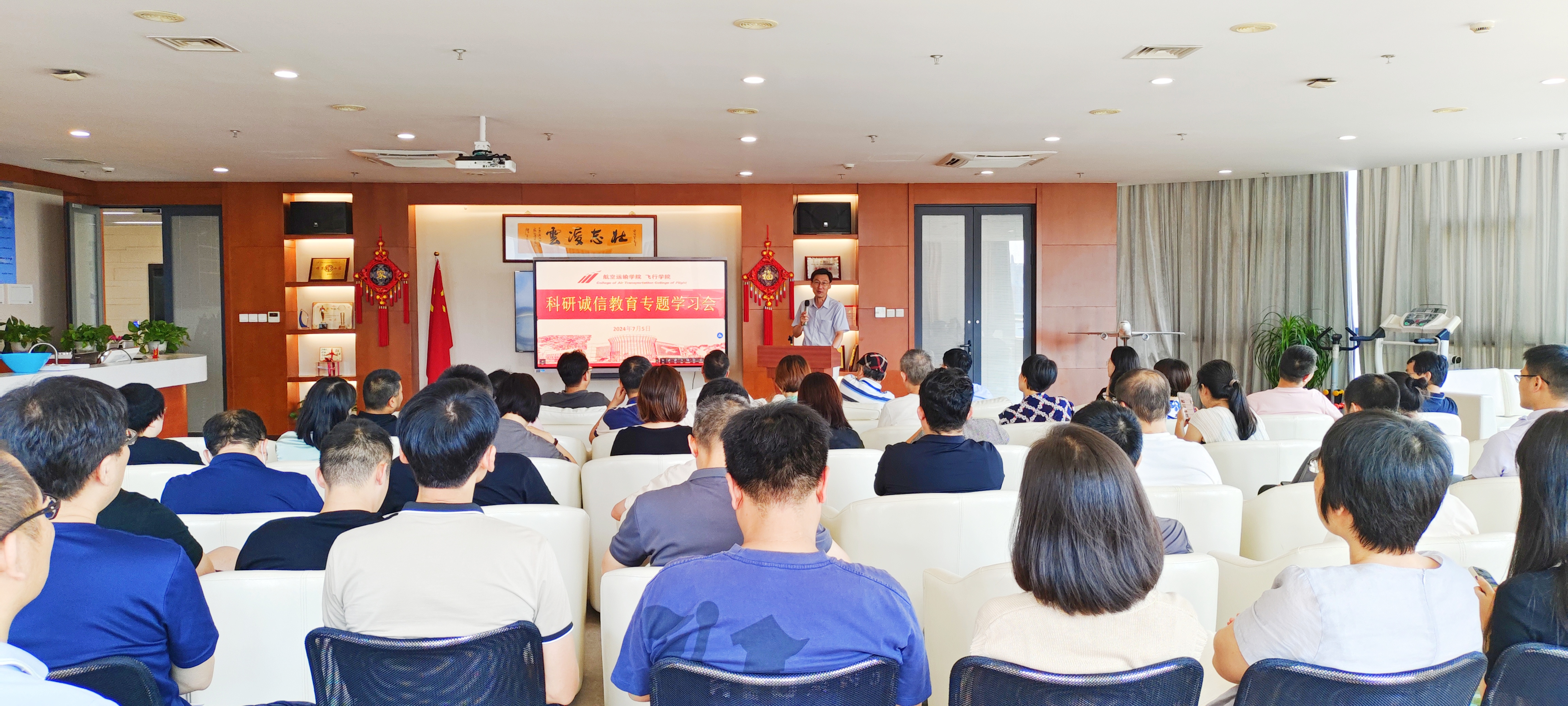 为进一步弘扬科学家精神,加强科研诚信建设,营造健康学术氛围,促进学科持续发展,航空运输学院于7月5日在航飞楼召开科研诚信教育专题学习会,学院全体教师参加学习。
