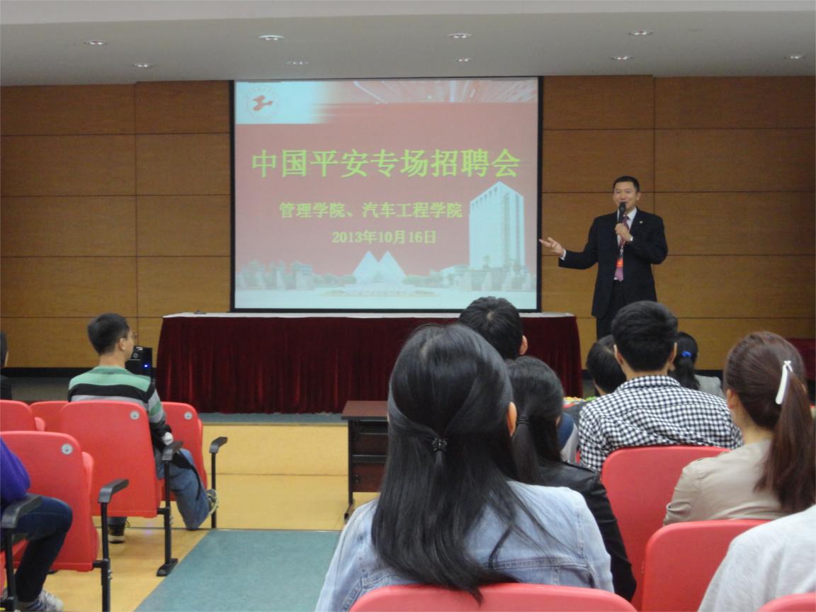 |   中国平安于10月16日下午在师活二报举行了专场宣讲招聘会,此次招聘吸引了来自管理学院、汽车工程学院、机械工程学院等多位应届毕业生参加。宣讲会由主管黄秀军主持。公司副总曹旭也亲临了招聘会现场。 此次中国平安招聘会主要招聘针对市场营销类岗位。公司主管黄秀军先生首先对“中国平安”向同学们全面的做了诠释与介绍,并且通过互动的交流方式了解到了同学们对于工作环境、薪资待遇等方面的要求与期望。与此同时以视频的方式向同学们展示了职员们的相关工作经历,成就以及感想。详细的解答了岗位应该做什么?怎么做?的核心问题。随后,黄主管向我们介绍了公司的实习生、毕业生的工资待遇、福利及生活团队,描述了一个毕业生薪资的发展空间等等。接下来,公司副总曹旭表示中国平安欢迎各位同学的加盟,希望各位同学早日成为平安的一员,并且针对同学们提出的问题一一进行了回答。最后,同学们拿着自己精心准备好的简历,满脸自信的与招聘人员积极交流,通过各种方式展示自我。 招聘会在热烈的沟通交流中圆满结束。中国平安给同学们一个展示自我的舞台,只要你有激情有梦想,敢于挑战极端,中国平安的大门永远向我们敞开。此次招聘会将会给同学们日后就业工作提供了积极的平台。 |