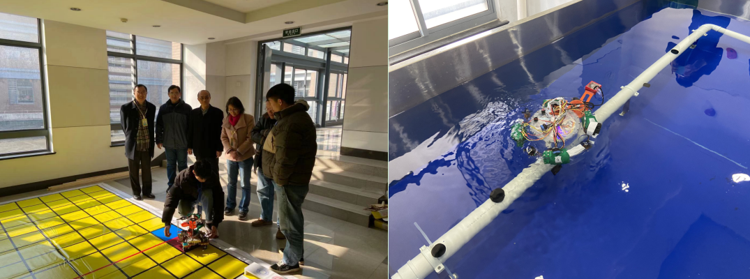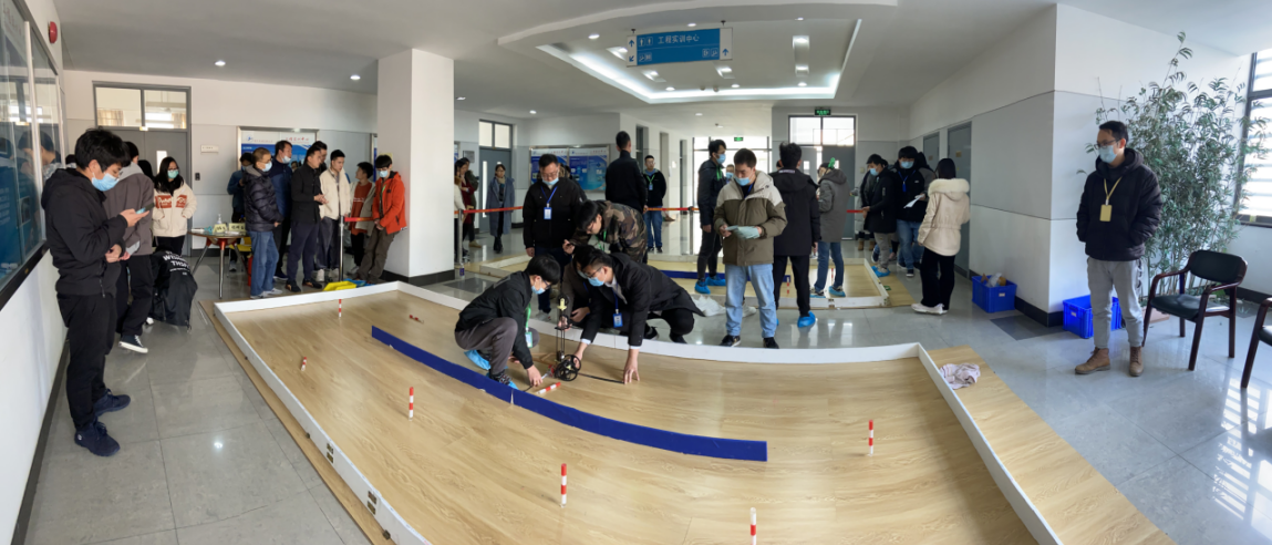 竞赛设有:工程基础赛道,包括:势能驱动车、热能驱动车 2 个赛项;“智能+”赛道,包括:智能物流搬运、水下管道智能巡检2 个赛项。其中智能+赛道的水下管道智能巡检赛项是在“海洋强国”的时代背景下新增设的竞赛项目,因此备受关注。专业教师、专家团队引导学生从实际任务出发,全方位思考问题,参赛的水下智能巡检机器人的整体设计方案,包括视觉识别、电路控制、机械结构、防水处理及智能深度学习等专业知识,表现十分精彩,同学们纷纷驻足围观。