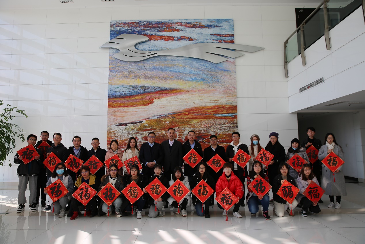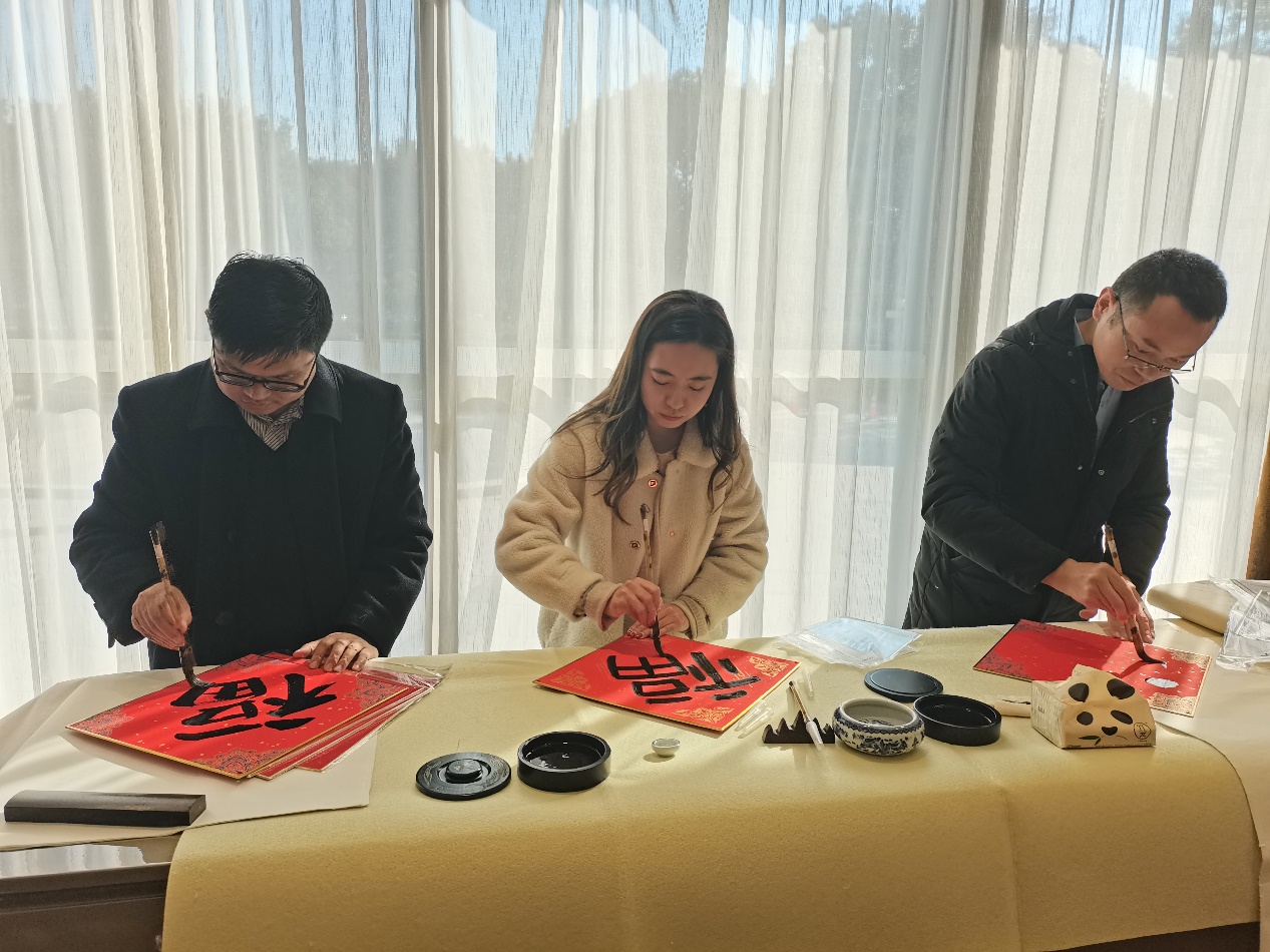 本次活动分为三个部分,在活动的第一阶段,上海市书法家协会副主席晁玉奎和松江区青年书法家在学校文化之家进行现场笔会,书法家们挥毫泼墨,写“福”为全校教职工送来新年的祝福。