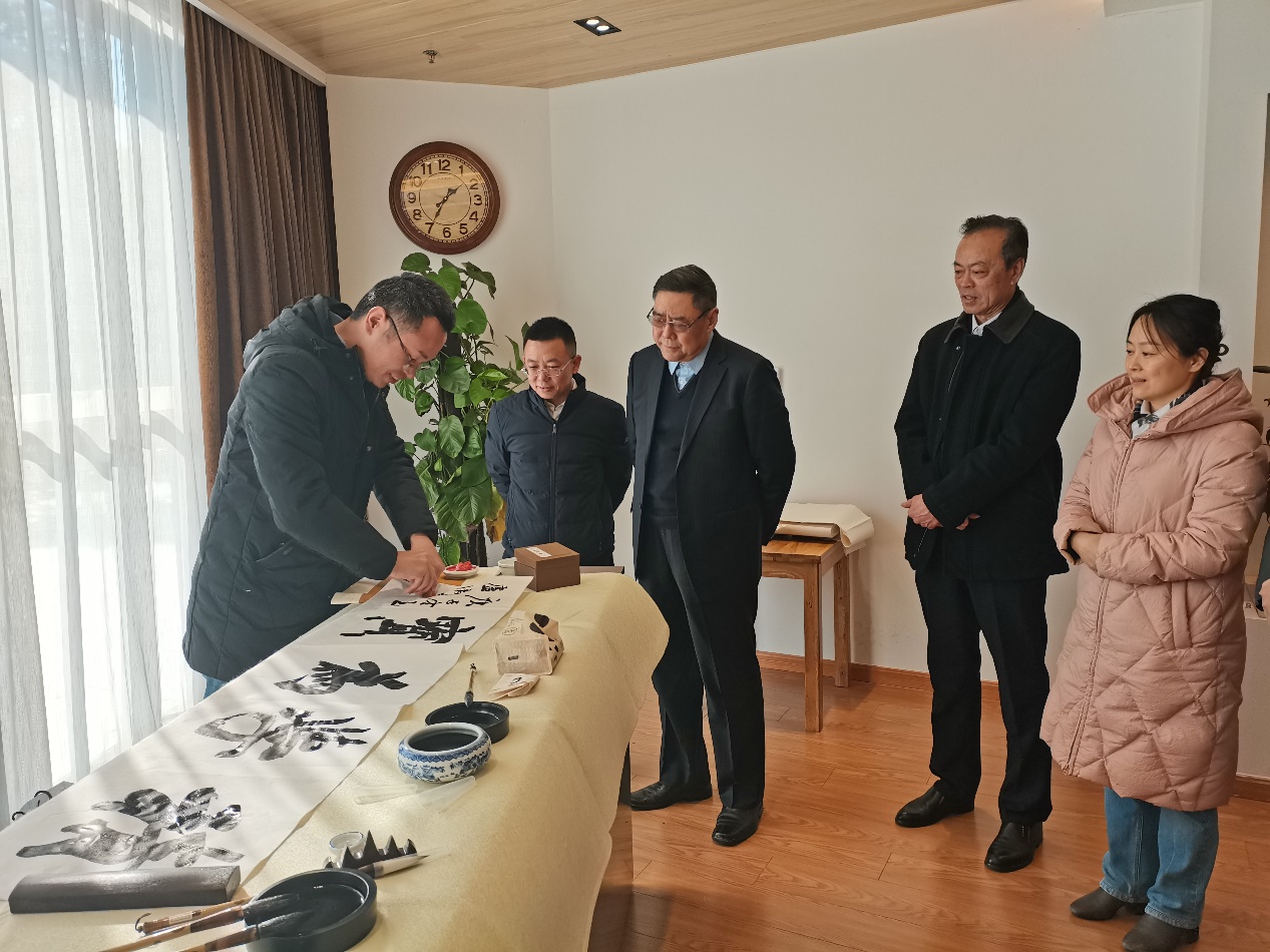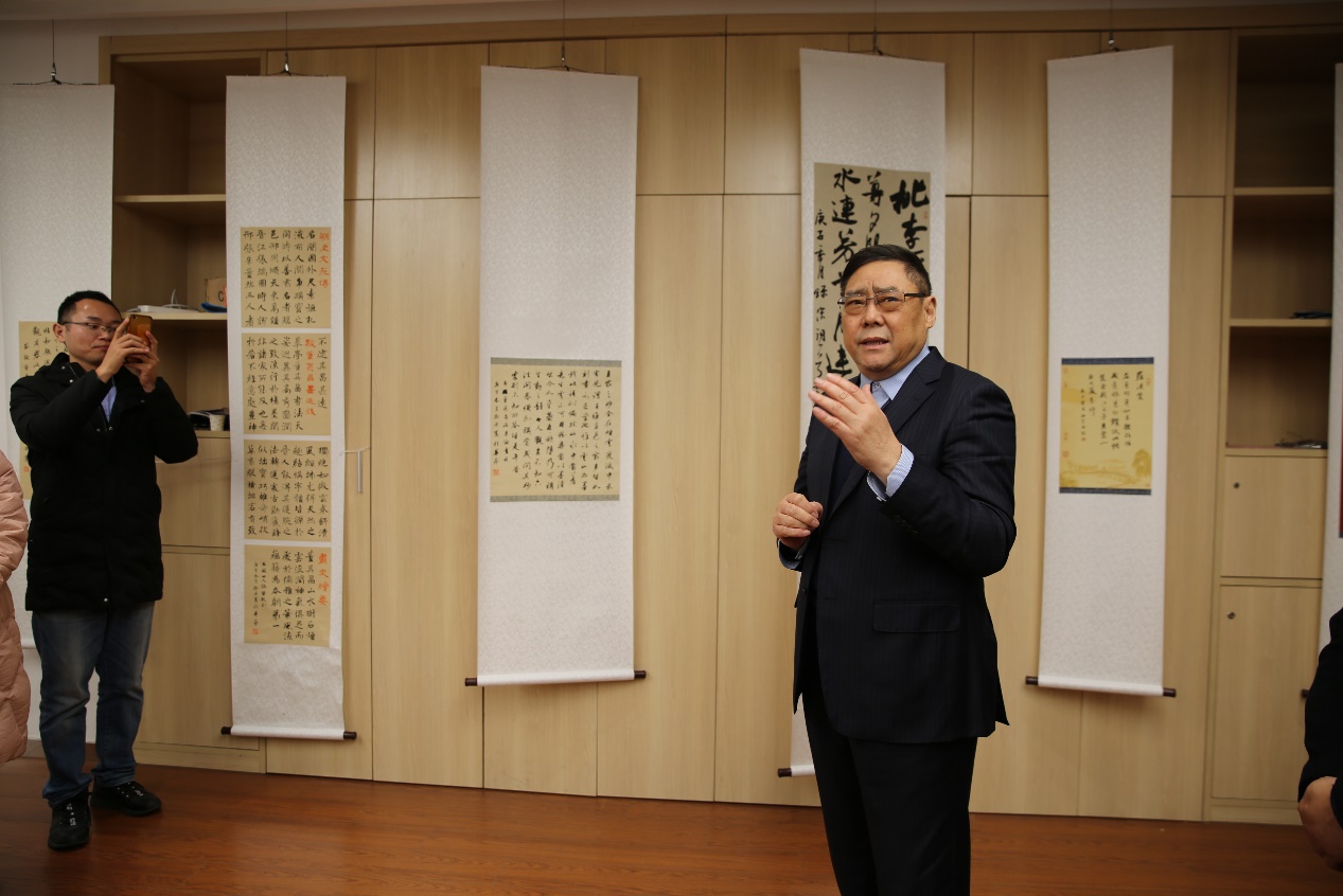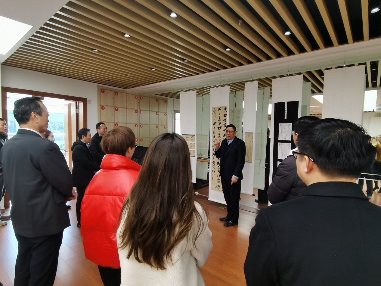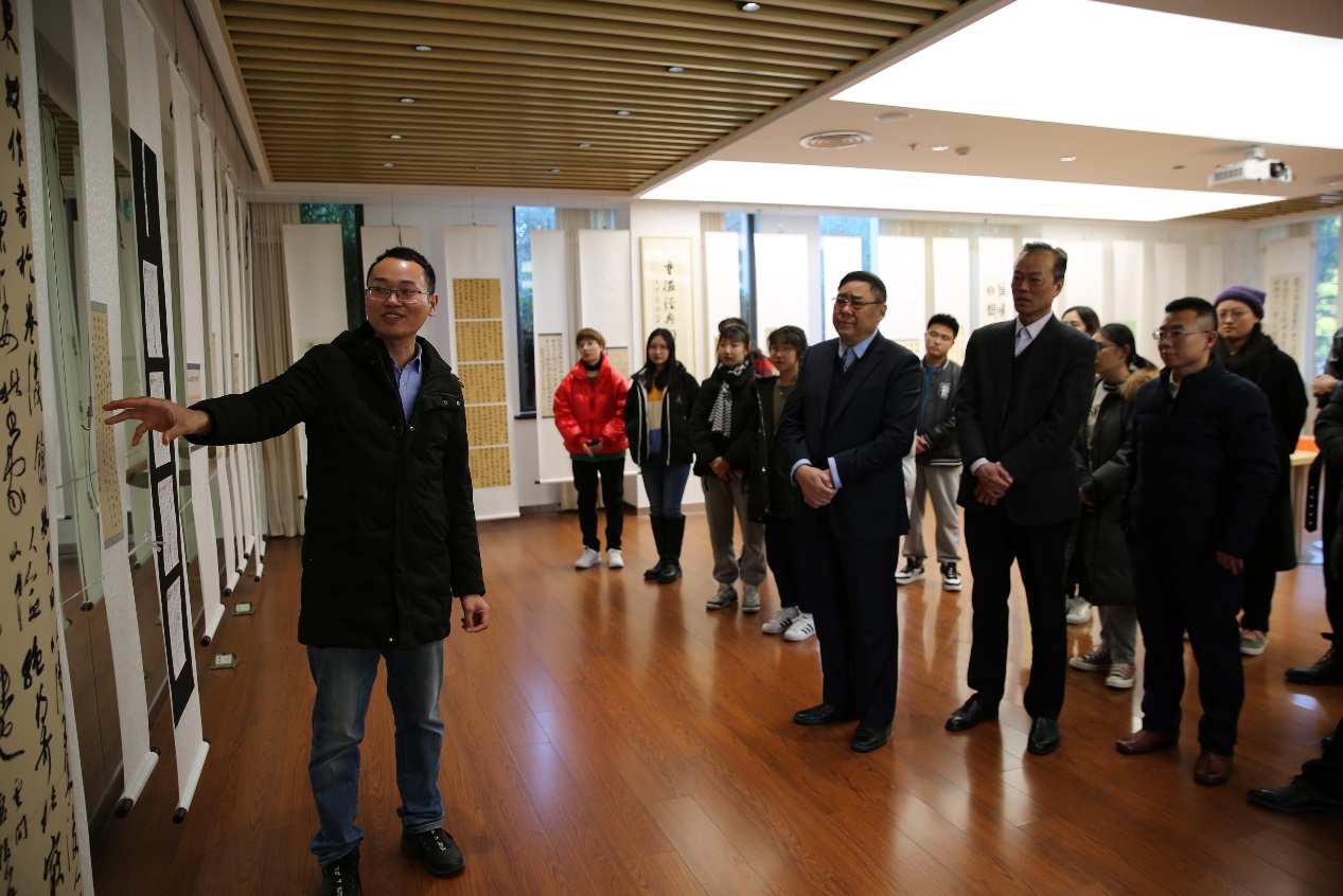 书法是中国汉字特有的一种传统艺术,历史悠久、源远流长,是中华民族传统文化中的瑰宝。练习、创作、欣赏书法作品的过程不仅是感悟、创作美的过程,更是感悟、领会、传承博大精深中华文化的过程。12月21日下午,上海市书法家协会副主席晁玉奎、松江区书法家协会主席、董其昌书画艺术博物馆馆长彭烨峰、松江区书法研究生代表及学校众多书法爱好者齐聚程园,享受书法艺术之美,感受程园文化氛围。