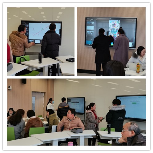 本次培训对新建11间智慧教室通用的中控面板、西沃一体机的使用进行了详细介绍,重点针对智慧教室B506特有的录播功能、小组多屏互动功能进行讲解和实操,最后老师们还参观了其他不同类型的智慧教室,对纳米黑板和磁性书写墙等进行了现场体验。