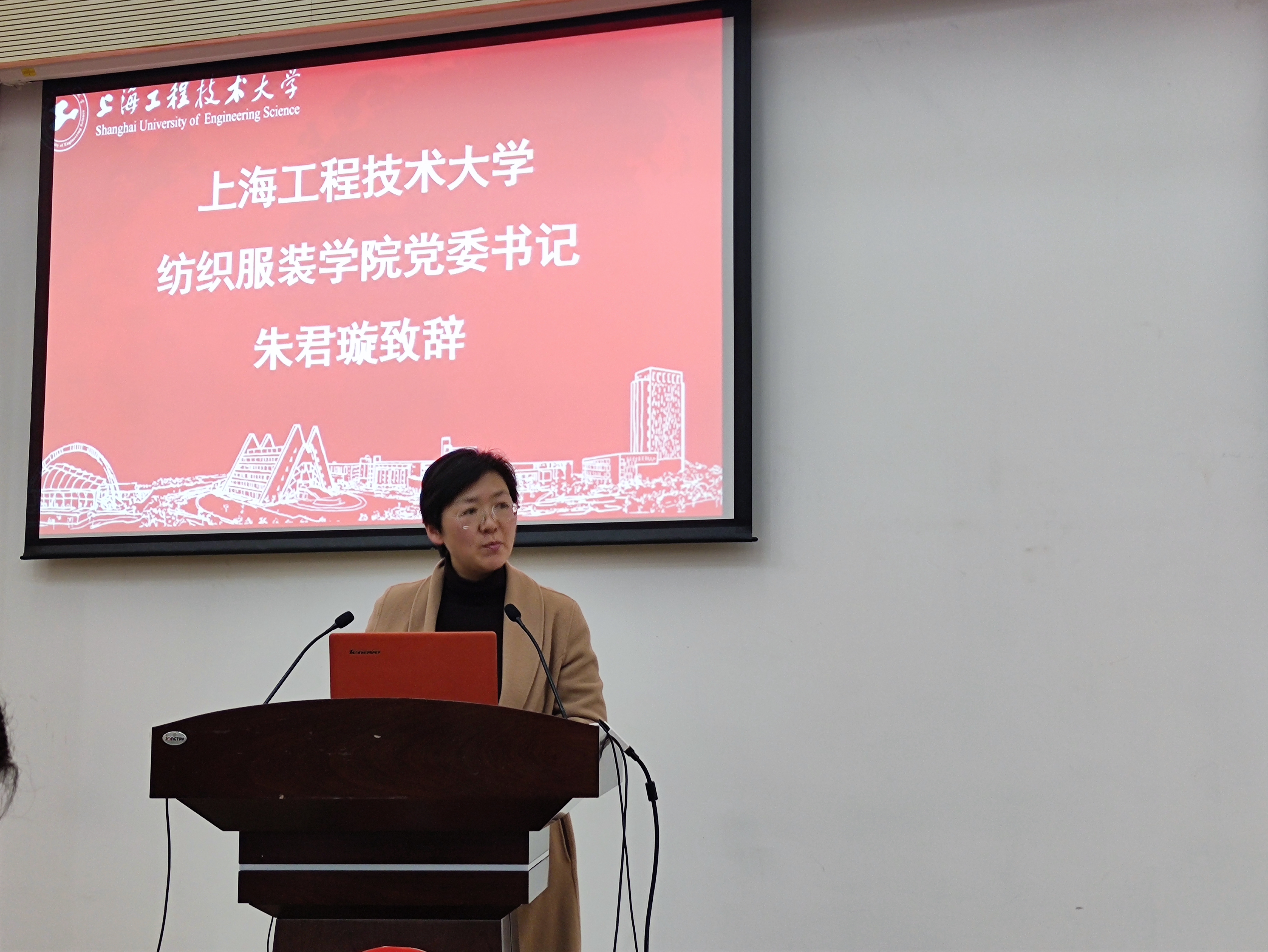 会上,纺织服装学院党委书记朱君璇致辞,她首先对上海真维斯服饰有限公司及上海市青少年发展基金会长期以来给予学校及学院的大力支持与帮助表示感谢。她鼓励同学们树立自励自强的信念,克服困难,奋发向上,永怀感恩之心,努力成为德智体美劳全面发展的社会主义建设者和接班人。