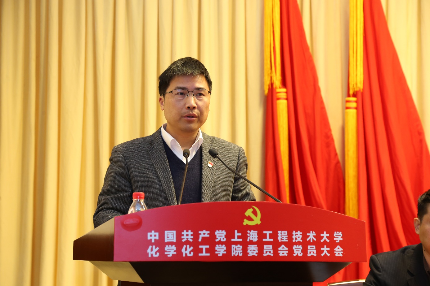 校党委常委、党委组织部部长朱洪春代表校党委向大会胜利召开表示热烈祝贺。朱洪春部长充分肯定了近年来化学化工学院党委在党建工作、人才队伍建设和专业建设等方面取得的成果。朱洪春部长对学院党委新一届委员会班子提出三点希望:一是加强班子自身建设,打造坚强有力的领导集体。学院党委要始终把党的政治建设摆在首位,加强理论学习,坚持和完善民主集中制,坚持底线思维,不断增强团队意识,努力把自身打造成为师生满意、干部信任、学校放心的坚强领导集体。二是深化基层组织建设,筑牢学院发展根基。要统筹学院党建的制度设计,切实抓好党支部建设,发挥好党支部战斗堡垒作用和党员先锋模范作用,促进学校、学院的事业发展。三是坚持系统观念,推动学院事业高质量发展。希望学院切实增强系统观念,科学谋划“十四五”发展,进一步明确学院的发展目标和定位,围绕办精、办强、办出特色,在继续加强传统优势学科的基础上,进一步优化专业学科结构,拓宽办学思路,多学科融合、内涵式发展、跨越式前进,努力提高学院办学特色,推动学院事业高质量发展。