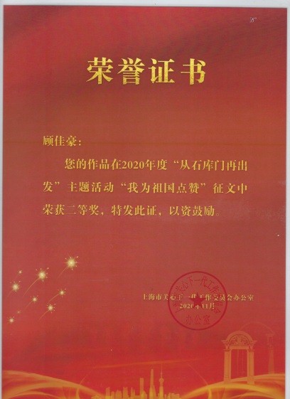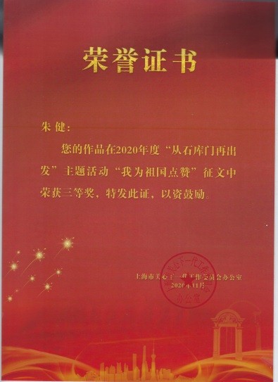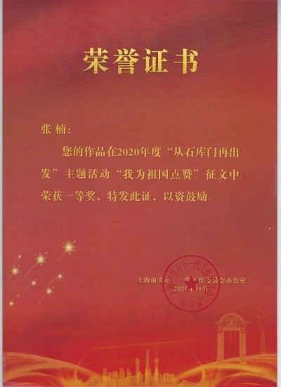 今年,我校在上海市关工委的“从石库门再出发——学习党史国史、传承红色基因、争做时代新人”主题活动中,荣获“我为祖国点赞”征文大赛一、二、三等奖。我校电子电气学院张楠同学获得一等奖、艺术设计学院顾佳豪同学荣获二等奖、机械与汽车学院朱健同学获得三等奖。