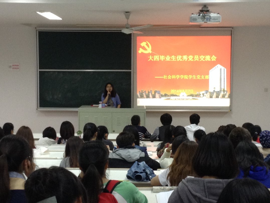 为了进一步落实学校有关学院第二党课的精神,并且在大一学生面前展示我院优秀学生党员的人格魅力,传递正能量。5月7日晚,社会科学学院优秀学生党员经验交流会在教学楼F210召开,本次的会议由周淑芬老师主持,社会科学学院学生党支部邀请了五位学生党员,结合他们奋斗的大学经历,为大一的新生上一堂特殊的党课。