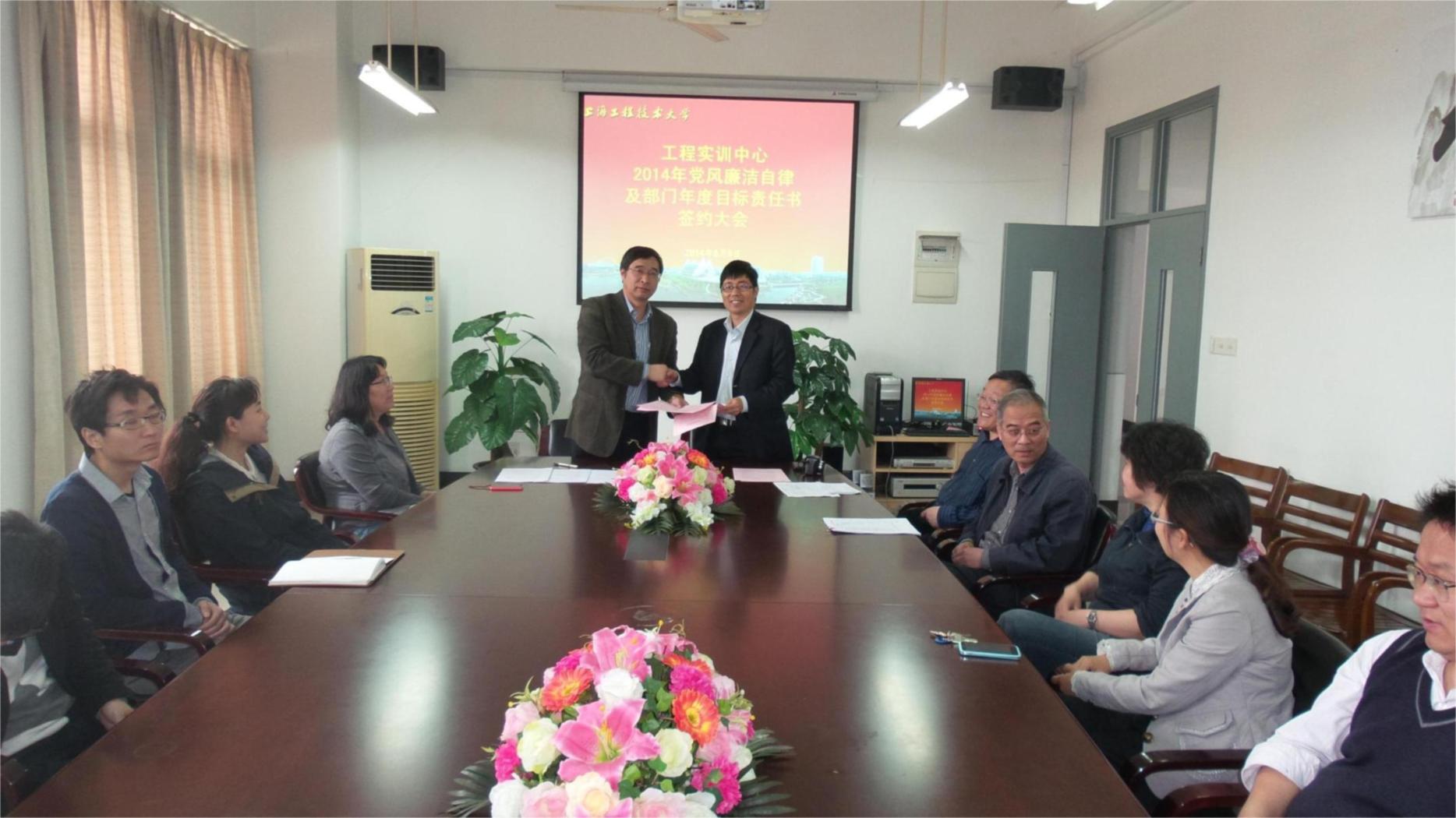 中心主任徐新成代表工程实训中心与各室部主任签订各部门的目标责任书。责任书包含了党建和大学文化建设、师资队伍建设、教学和科研等方面的工作,目标明确,既要完成常规工作又提出了新的奋斗目标,要加强工程实训中心的内涵建设,努力完成学校下达的各项任务。