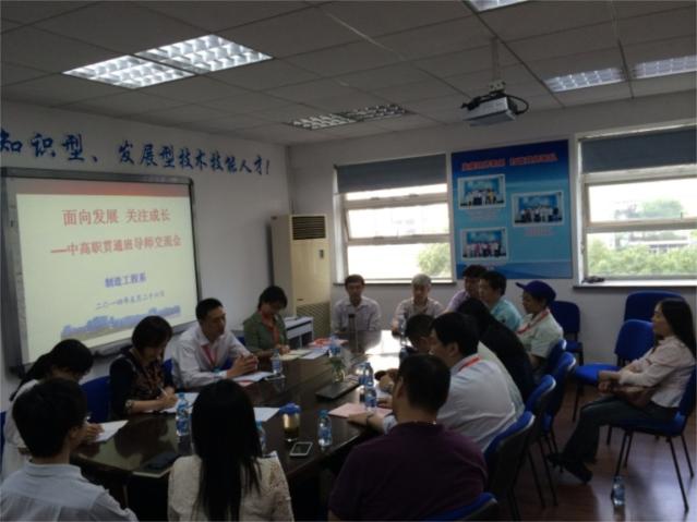 2014年5月26日下午,制造工程系在教学研讨室召开以“面向发展,关注成长”为主题的中高职贯通班导师交流会。会议结合5月19日中高职贯通班学生座谈会的相关内容展开深入交流与讨论。会议由系部主任万军老师主持,与会人员有系部书记朱红新老师、全体导师、2位班主任和教务员。