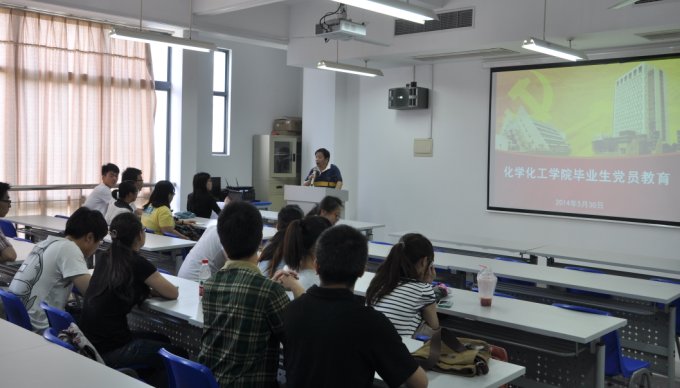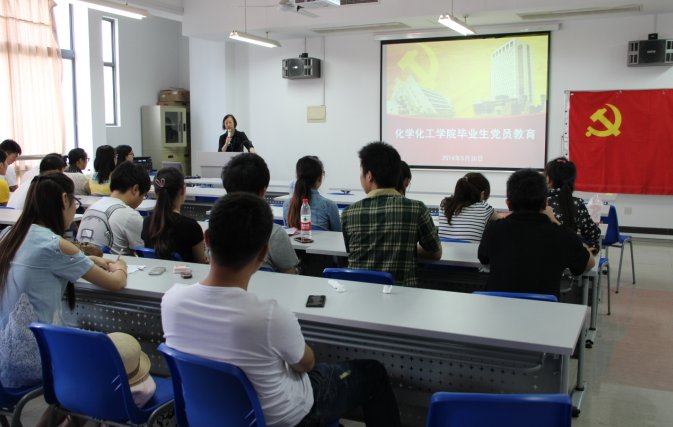 5月30日下午,化学化工学院党总支在实训楼4405是召开毕业生党员离校教育。会议由化工学院组织员包一鸣主持,学院总支书记刘宇虹、总支副书记熊筱晶、谷里鹏教授以及全体辅导员与全体毕业班党员参加会议。