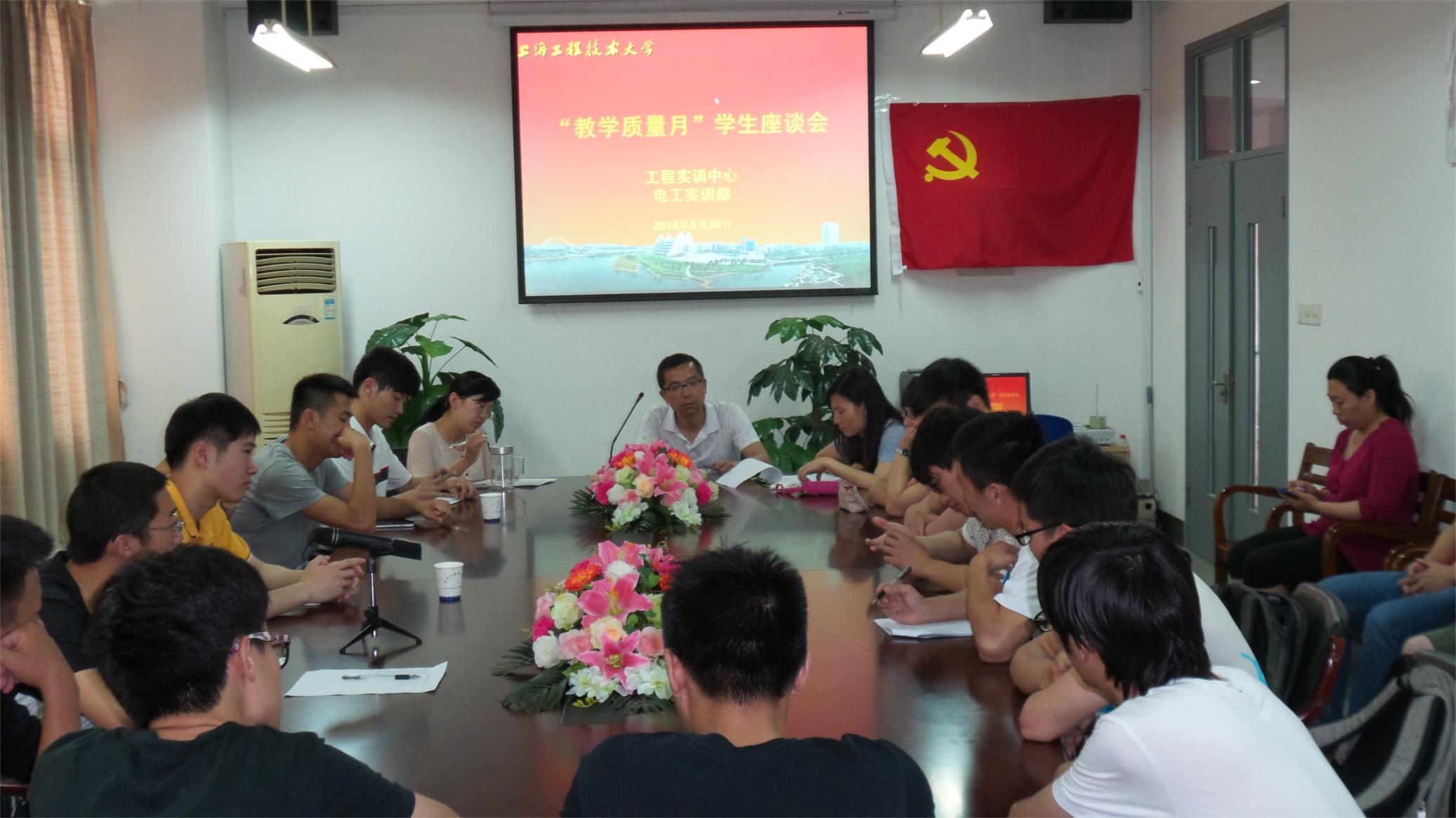 6月4日下午,工程实训中心电工实训部在实训楼1438室针对实践教学召开了 “教学质量月学生座谈会”,参加会议的有机械学院、电子电气学院、汽车学院、轨道学院的学生代表和电工实训中心大部分老师,会议由陈国明老师主持。