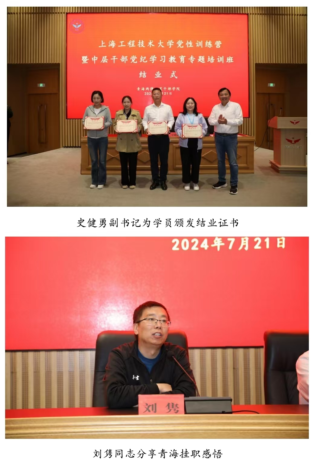 结业式上巡察组组长倪智勇、数理与统计学院院长王国强、马克思主义学院党委书记董旖旎、团委书记陈翼然等4名学员代表作交流发言。我校马克思主义学院副教授、青海两弹一星干部学院副院长(挂职)刘隽分享了青海挂职感悟。