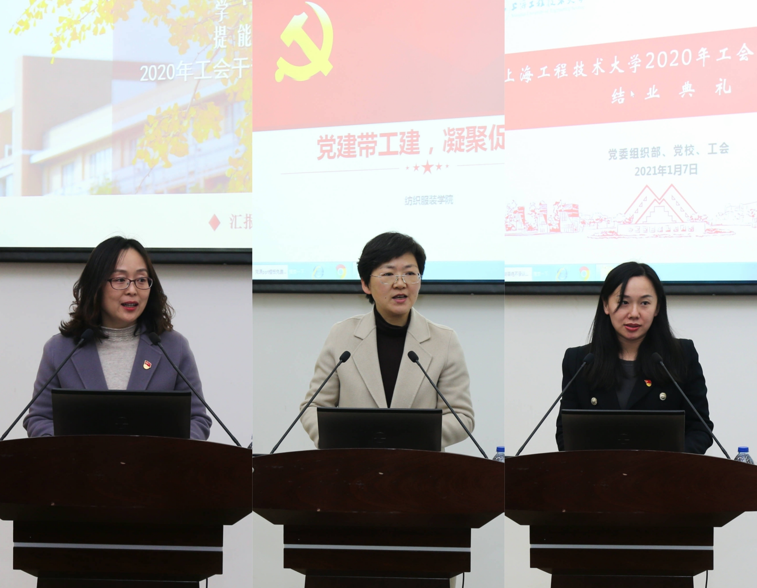 培训班结业典礼由党委组织部副部长、党校常务副校长张可菡主持。校工会副主席、妇工委常务副主任、女工委主任李霞从组织领导、内容、成效三方面对培训班开展情况进行了总结。校工会委员会委员、纺织服装学院党委书记朱君璇以《党建带工建,凝聚促发展》为题交流发言,展现了党建引领工建、群团工作融入中心工作的思路和举措,体现了党建工建相互促进、一体推进、共同发展的突出成效。电子电气学院工会副主席、妇工委、女工委委员田谨介绍了参加培训的心得体会,展现了青年工会干部勇于创新、奋发进取的精神面貌。随后,校党委副书记、工会主席史健勇等为学员代表颁发了结业证书。