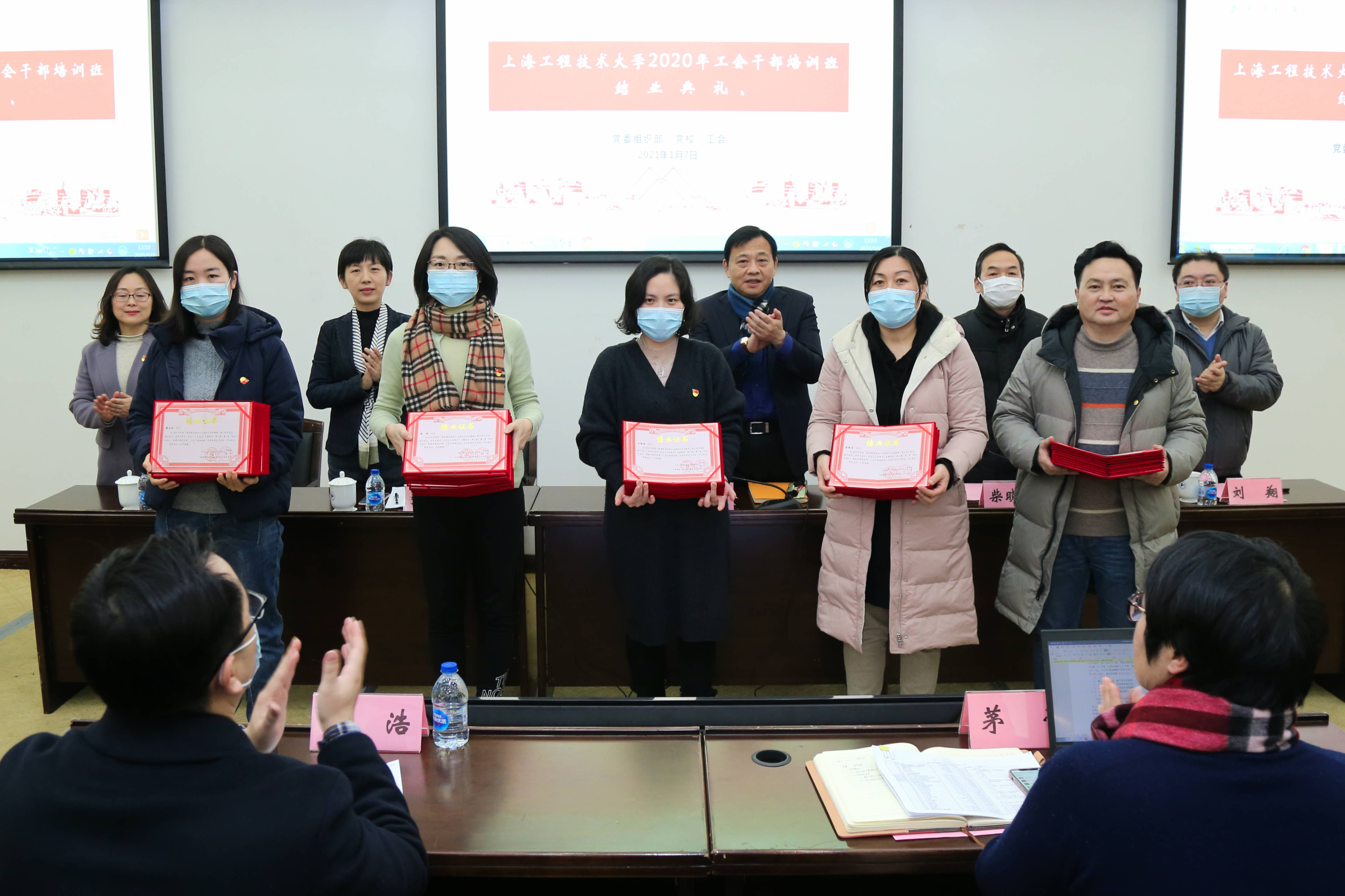 为学习贯彻习近平新时代中国特色社会主义思想,深入推动“四史”学习教育,加强工会干部队伍建设,提升工会干部政治理论水平和业务工作能力,促进基层工会工作交流,认真总结并谋划好新阶段工会工作目标和重点,1月7日下午,2020年工会干部培训班结业典礼暨年度工会工作总结交流会在学校图文信息中心第三报告厅顺利举行。校党委副书记、工会主席史健勇出席会议并讲话,党委组织部、党校负责人,校工会干部以及全体培训班学员参加了会议。
