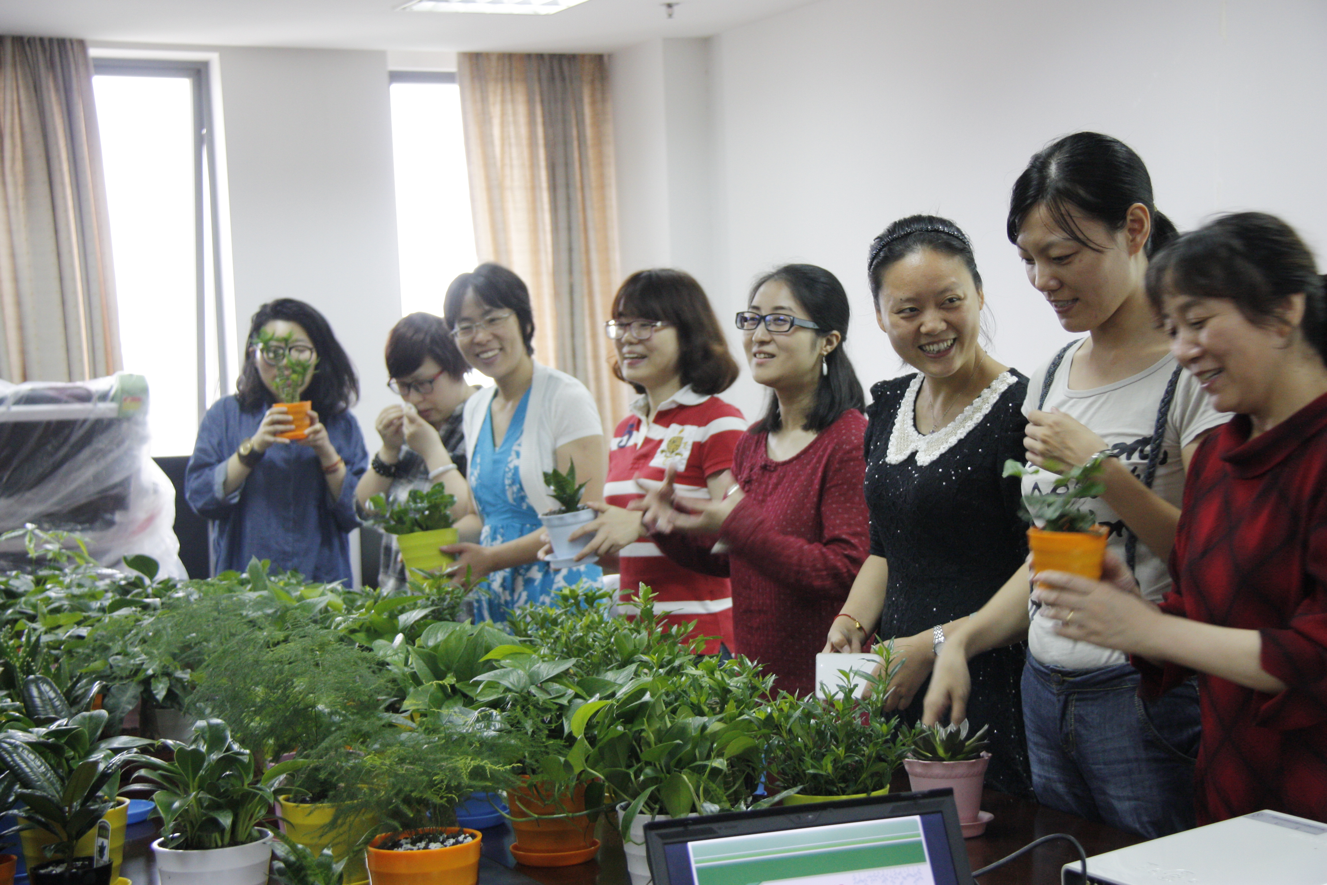 办公室作为工作的场所,并非只是各种办公文件存放、办公设备遍布的枯燥地方,通过选购适宜的植物进行合理摆放,不仅可以美化环境,而且可以净化空气、吸收电脑辐射等。但是,什么样的植物适合摆放在办公室呢?如何养护?本次活动特邀专业养花人士首先向女教师们介绍了绿植的分类、最适合在办公室内种植的植物及其含义、作用等,女教师们都听得津津有味。活动过程中,教师们还不时提出自己种植绿色植物时遇到的困惑,专家利用现场摆放的二十余种小型盆栽为他们作了解答,并详细地讲解了盆栽植物的其他知识,如不同植物的生长习性、养护方法等。