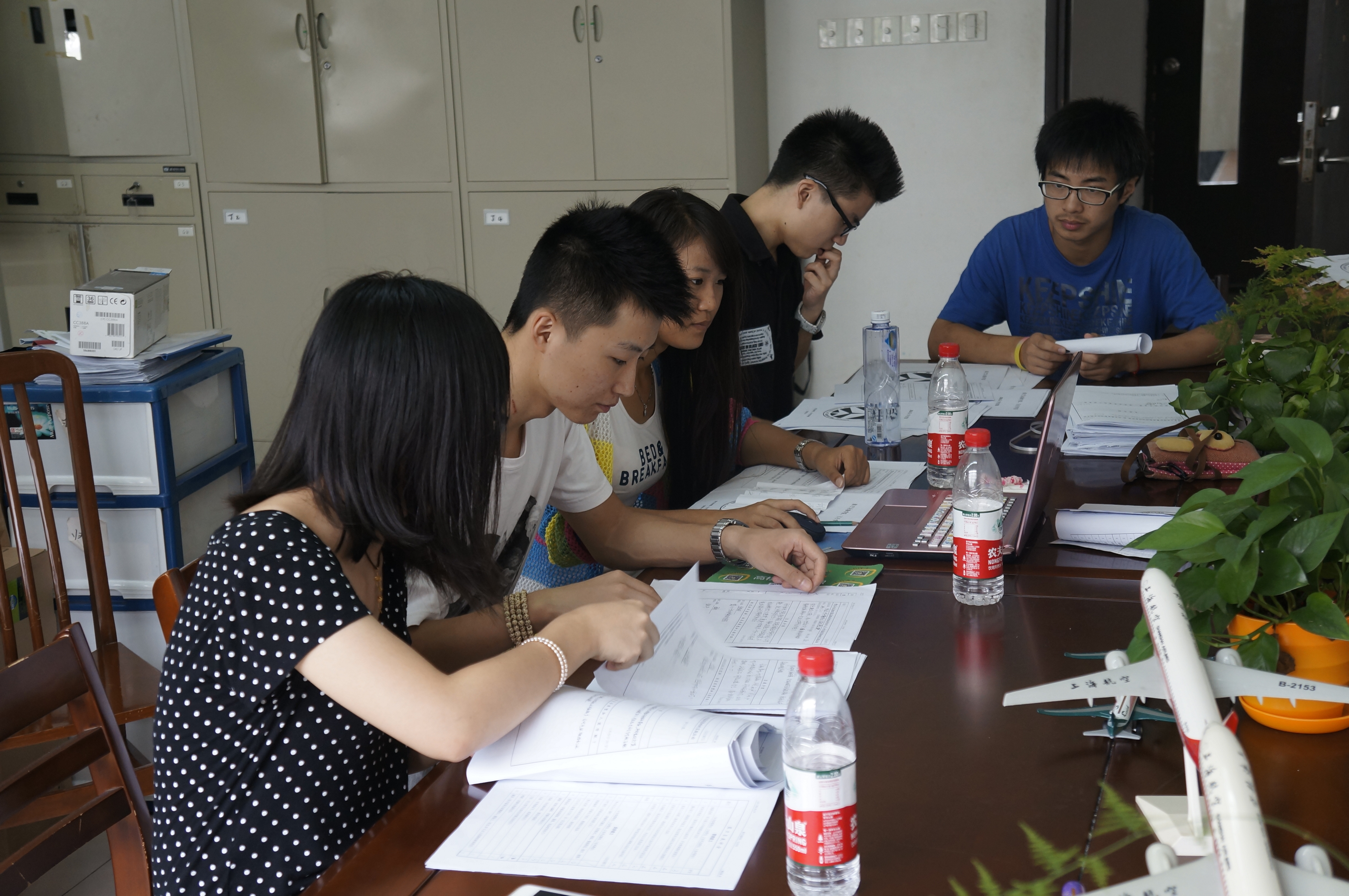 而为了保障以上这些工作的成功进行,团学联的各部门部长在办公室、寝室、教学楼之间来回奔波,计划和安排各部门分工,为迎新工作提供所需的材料和物质支持,从而使得军训能够顺利进行。