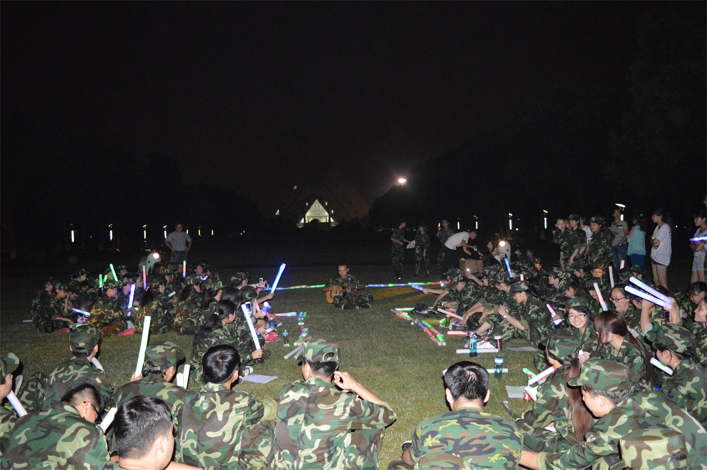 伴着皎洁月光,晚会在行政楼草坪前拉开帷幕。首先,来自新疆的郑乌皓洋为观众们带来了一曲吉他弹唱,这首讲述军训时光的《我们》由他填词,写实而幽默的歌词及动听的旋律赢得阵阵掌声;接着,一连串舞蹈点燃了观众的热情,来自苗族的潘暄献上热情奔放的街舞,远道而来的新疆姑娘阿地拉和小伙子阿迪力江与同伴们一起跳起了维吾尔族舞蹈,将现场的气氛带入了高潮。维族姑娘吉米兰和哈萨克族姑娘森巴蒂用美妙的和声完美演绎了蕾哈娜的《Diamonds》,引得同学们啧啧称赞;公管一班的诗朗诵《社会主义核心价值观》引人深思,公管二班的男生合唱《倔强》及女生合唱《一个像夏天一个像秋天》,让同学们的心靠得更近。晚会上,学院还为十二位在军训期间过生日的同学举办了特别的生日会,主持人为他们呈上点着蜡烛的生日蛋糕,寿星们开心地许愿,老师和同学们为他们唱起了欢快的生日歌。