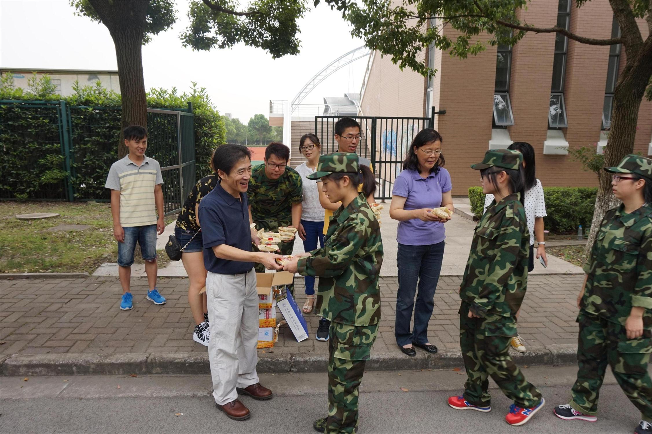 最后,吴忠院长和吴清书记共同代表管理学院先后给每一位教官发放节日慰问品,为每位新生送上了月饼。在发放月饼过程中二位老师还与多名同学亲切交谈,询问同学们军训的情况,对大学生活的感受等等,与在场的同学们做出了热情的交流。