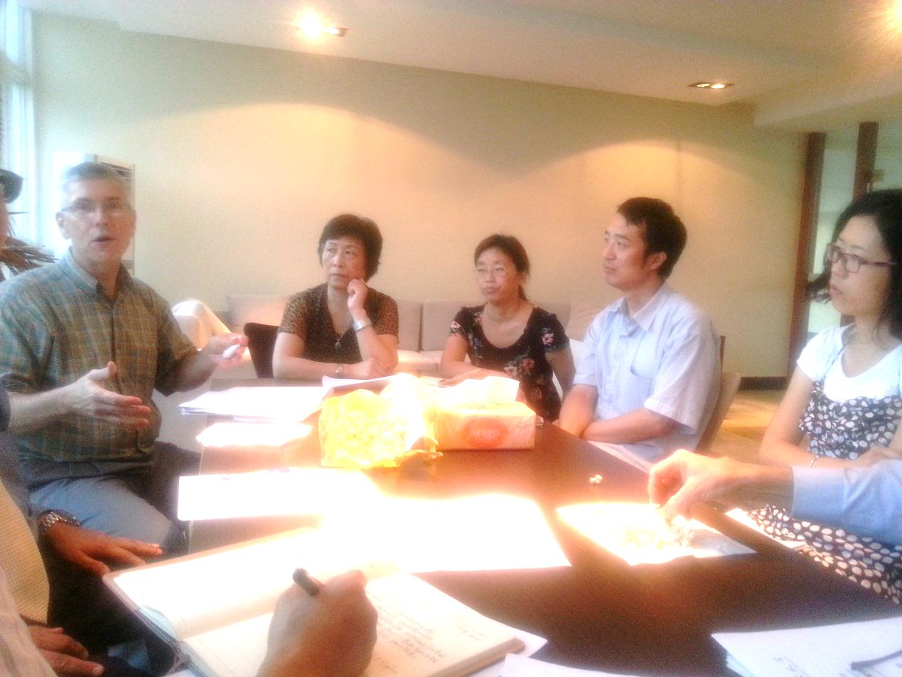 在专业教学外教座谈会上,徐滕岗院长首先向来自劳伦斯理工大学的三位教授介绍了今年4月份以来中外合作项目的评估情况及专家评估意见,并介绍了最近修订的2014年中美合作项目培养计划的特色和意义。会上,中美工程学院向外教们展示了由学校教务处和中美工程学院联合拟定的《中外合作项目教学质量保障体系教师规范手册》,并就《手册》中“课程教学提交材料清单”征求大家意见,中外方教师均联系自身的实际教学实践和经验就《手册》中的具体细节逐条研讨并发表了自己看法。《手册》获得了中外方教师一致的认可和好评。