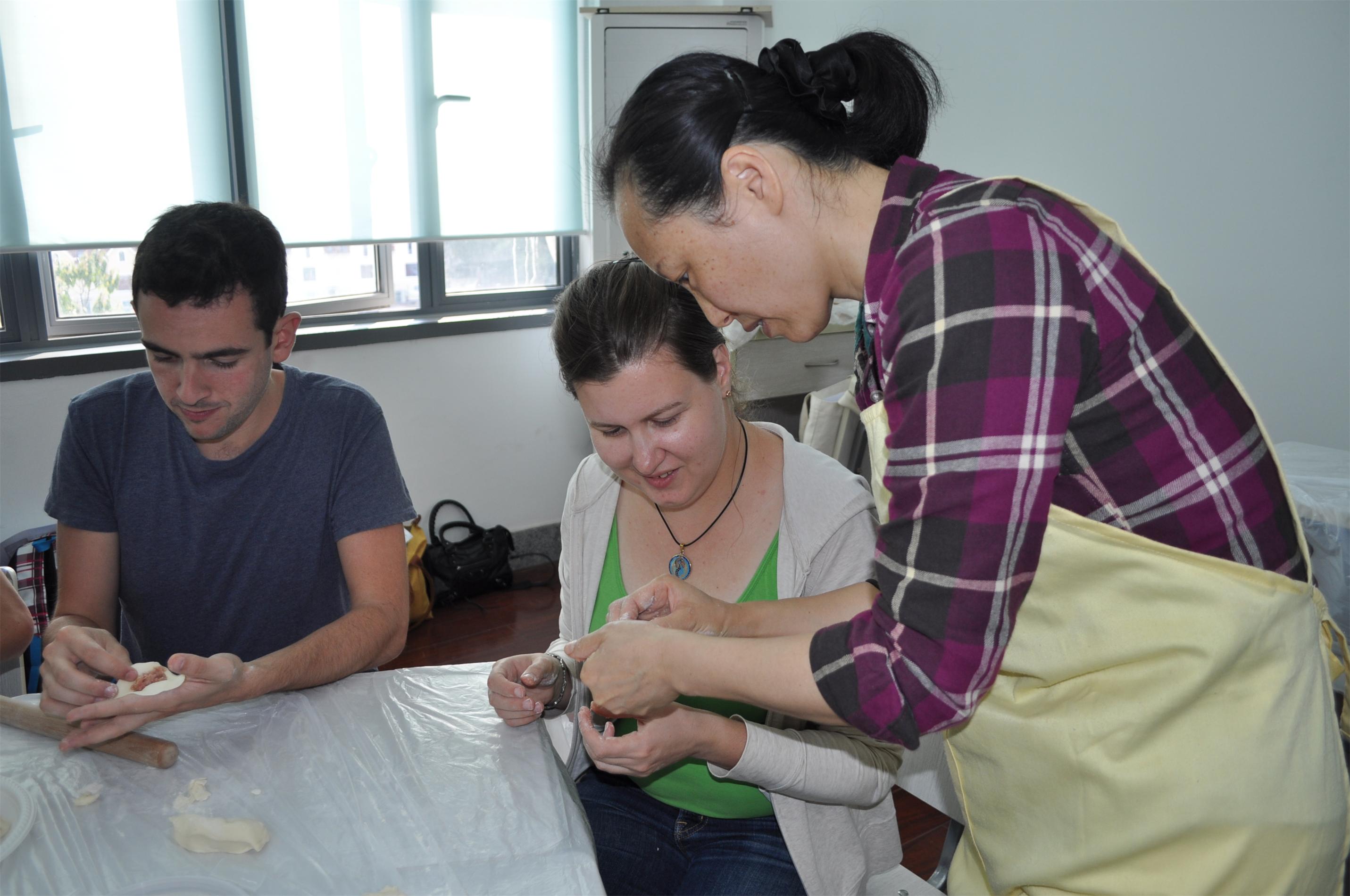 10月29日午间,在仙霞路校区教学楼517教室,不时传出阵阵欢声笑语,飘出阵阵香气。20名分别来自德国、俄罗斯、日本、韩国等国家的留学生聚在这里,正全神贯注地听老师讲解小笼包的制作,准备一试身手,亲手制作上海的特色小吃——小笼包。原来,留学生们正参加中心举行的“全英文午间中国文化系列讲座——留学生学做小笼包”的活动。