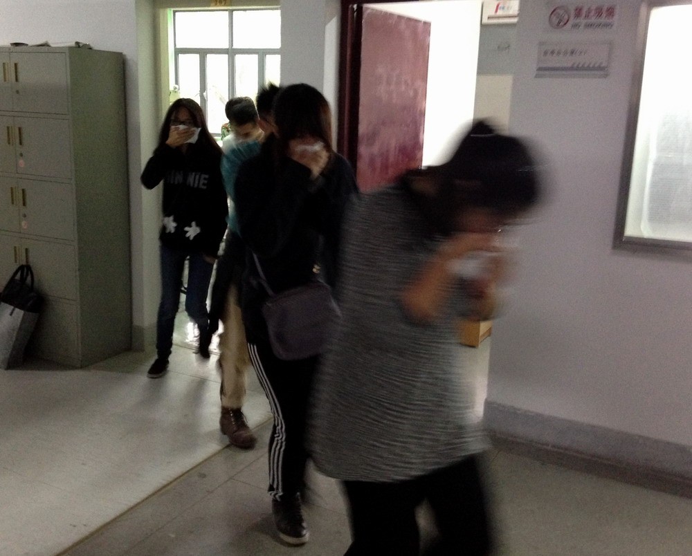 为确保演练效果,演练前,中法学院制定详细、切实可行的消防演练方案,明确了参演人员的演练职责、演练内容、演练程序和要求。演练时,随着逃生演练指挥人员的一声令下,教学楼200内的“被困”师生用湿纸巾捂住鼻子,附身跑往消防通道疏散,在1分钟内全部安全疏散。