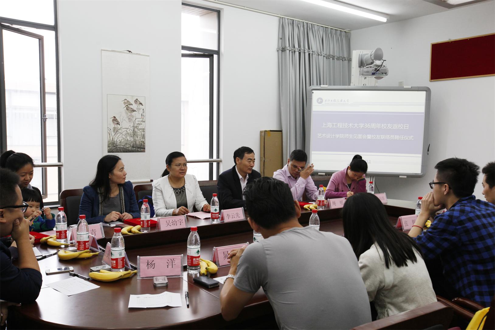 11月1日上午,艺术设计学院校友返校日师生见面会暨艺术设计学院校友联络员聘任仪式在艺术楼A510室举行。艺术设计学院总支书记许传宏,副书记李云先,院校友联络处会长绳明,副会长吴幼宇、陈玮炜、高青青及艺术设计学院历届校友代表、教师代表、学生代表参加了聘任仪式。仪式由学院党总支副书记李云先主持。